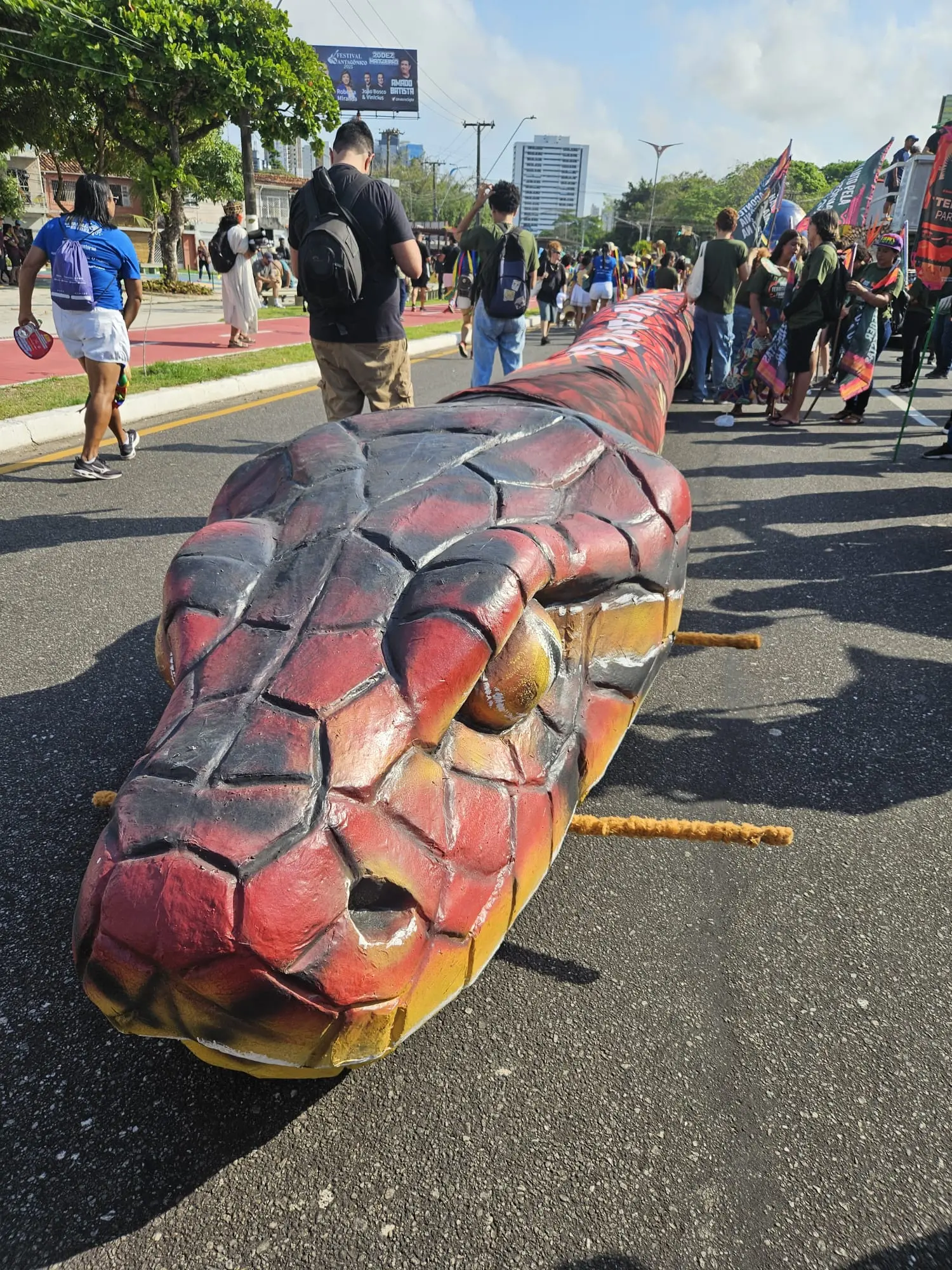 Una marcia grandiosa, un fiume di gente, un intreccio armonioso di difensori della terra, della giustizia climatica e sociale. I messaggi che vengono dalla strada sono un programma di lavoro e una denuncia: Il collasso ambientale è capitalista, la transizione con il petrolio in Amazzonia è una farsa. No alla finanziarizzazione della natura. False soluzioni, crimini reali. Non c’è giustizia climatica senza la liberazione della Palestina. La gente chiede conto. Le soluzioni nascono dai territori. Senza casa non c’è giustizia. Senza giustizia climatica non c’è giustizia sociale. Terra e cibo per i popoli non per i profitti. Vogliamo le favelas al centro delle decisioni climatiche.