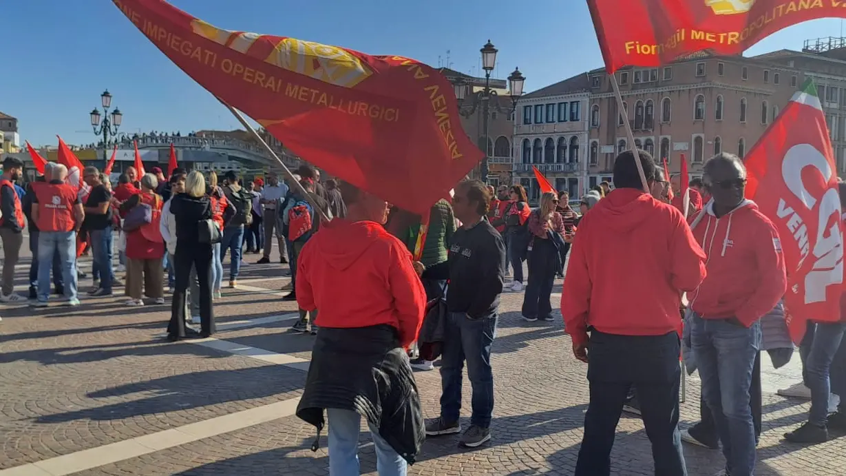 Questa mattina, 13 ottobre, la Cgil Veneto ha organizzato un presidio in Campo San Tomà a Venezia, nei pressi di Palazzo Balbi, sede della Giunta regionale. Al centro della protesta, il nuovo Protocollo d’intesa sugli appalti che la Cgil Veneto ha scelto di non sottoscrivere a causa del rifiuto da parte della Regione Veneto di apportare alcune modifiche ritenute imprescindibili dal sindacato per garantire condizioni di lavoro dignitose e sicure alle lavoratrici e ai lavoratori coinvolti ogni giorno nei cantieri, nelle aziende e nei servizi pubblici della regione. Al presidio erano presenti delegazioni di lavoratrici e lavoratori provenienti dai settori maggiormente coinvolti dagli appalti e da tutte le province del Veneto.