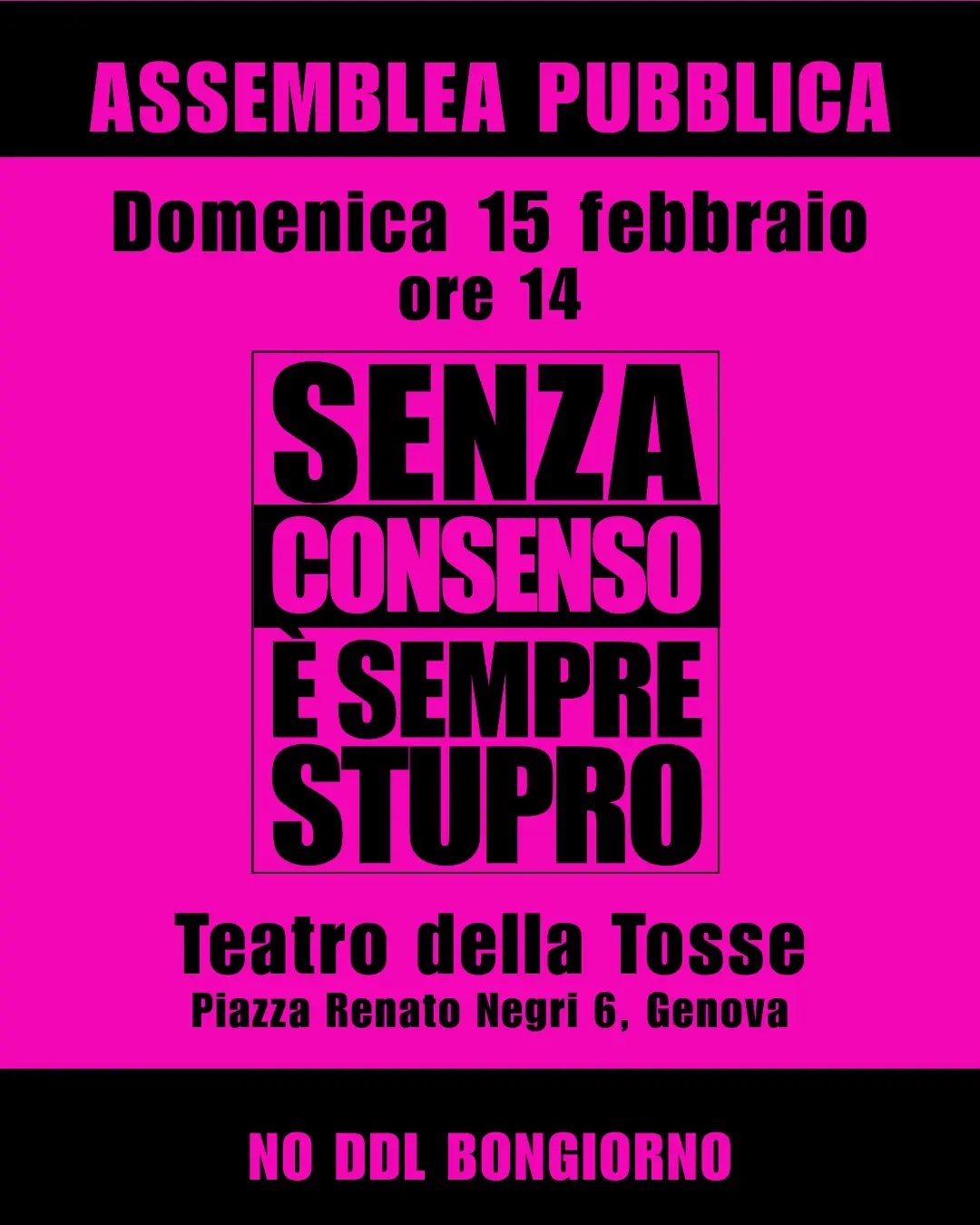 Domenica 15 febbraio sarà una giornata di mobilitazione nazionale per dire No al cosiddetto ddl stupri, secondo il testo riscritto dalla senatrice Giulia Bongiorno e passato in commissione Giustizia al Senato con il voto favorevole dei partiti di maggioranza, in sostituzione del vecchio testo base che nel novembre scorso aveva ricevuto un’approvazione bipartisan.