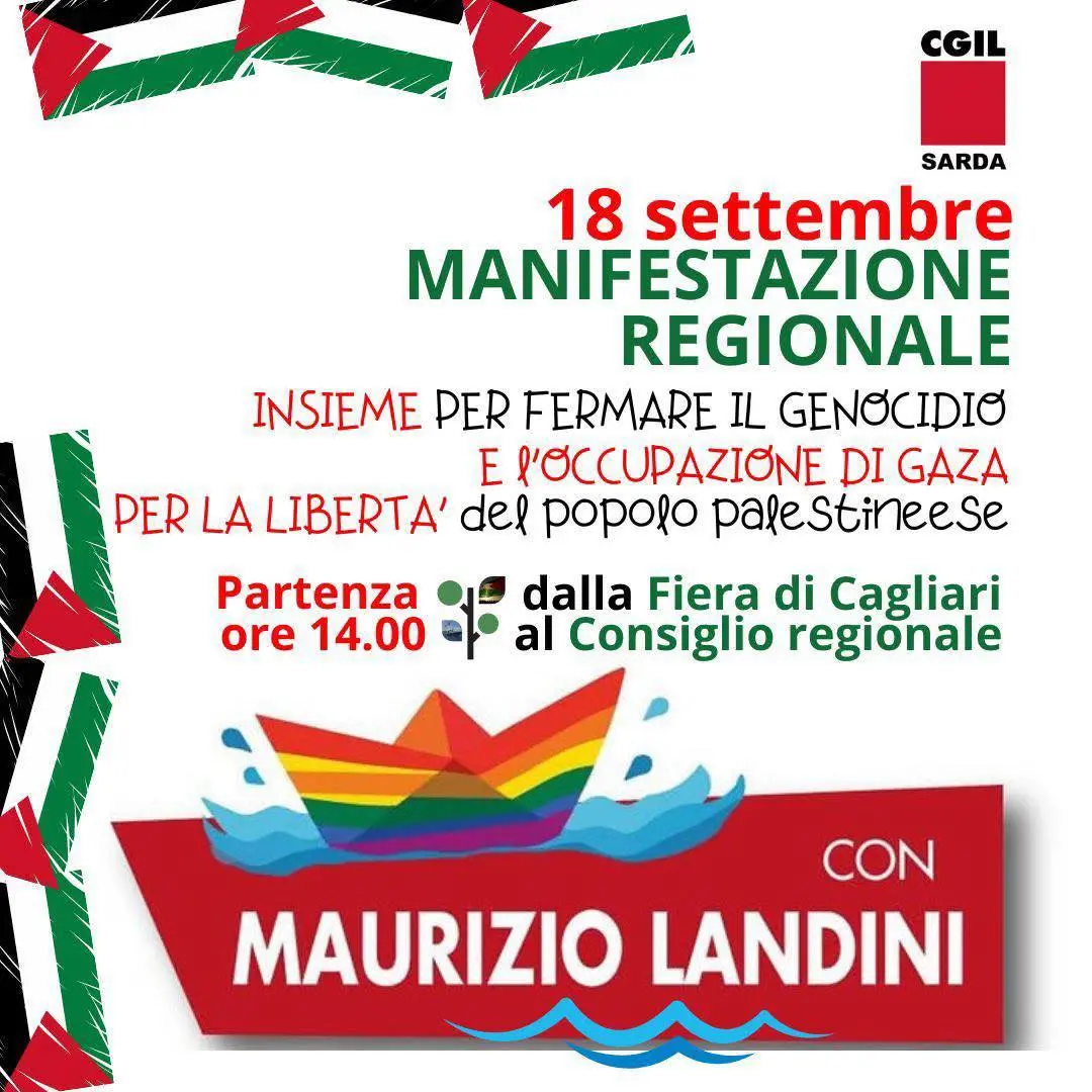 A Cagliari l’appuntamento della Cgil per Gaza è giovedì 18 settembre con Maurizio Landini