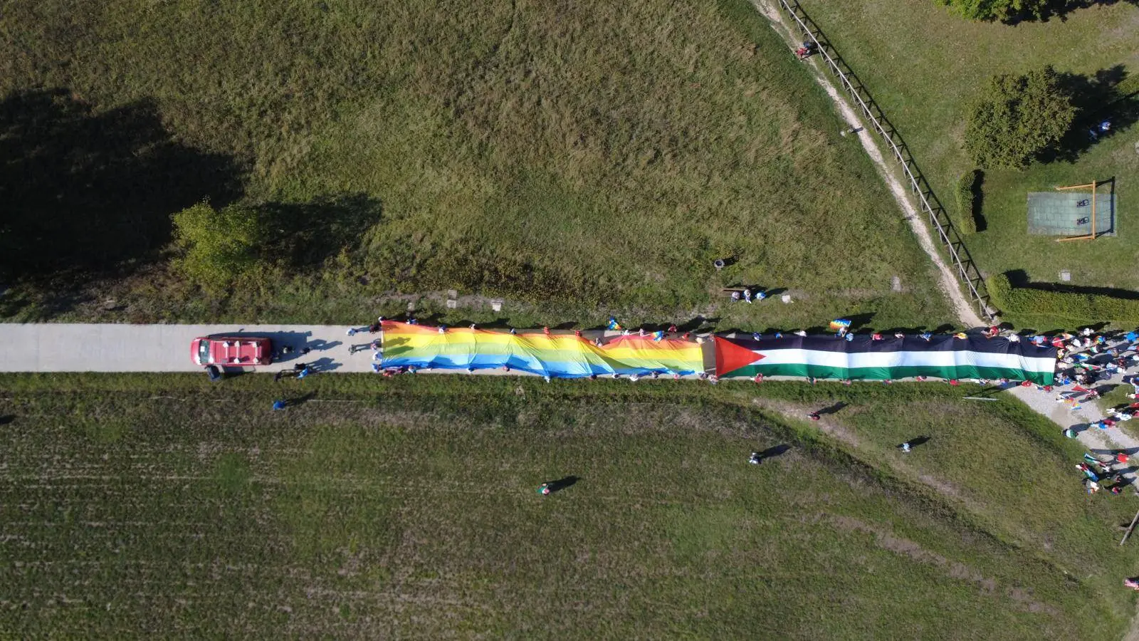 Dopo l'appuntamento in piazza del Nettuno di Bologna e la maratona di preghiera di metà agosto, è ancora Monte Sole,a Marzabotto, la destinazione per la manifestazione per la pace e la Palestina indetta da Cgil per oggi, 6 settembre. Nel giorno della mobilitazione nazionale promossa dal sindacato per “fermare la barbarie” a Gaza, oltre duemila persone hanno sfilato con un'enorme bandiera palestinese di 24 metri verso il luogo simbolo della strage nazifascista.