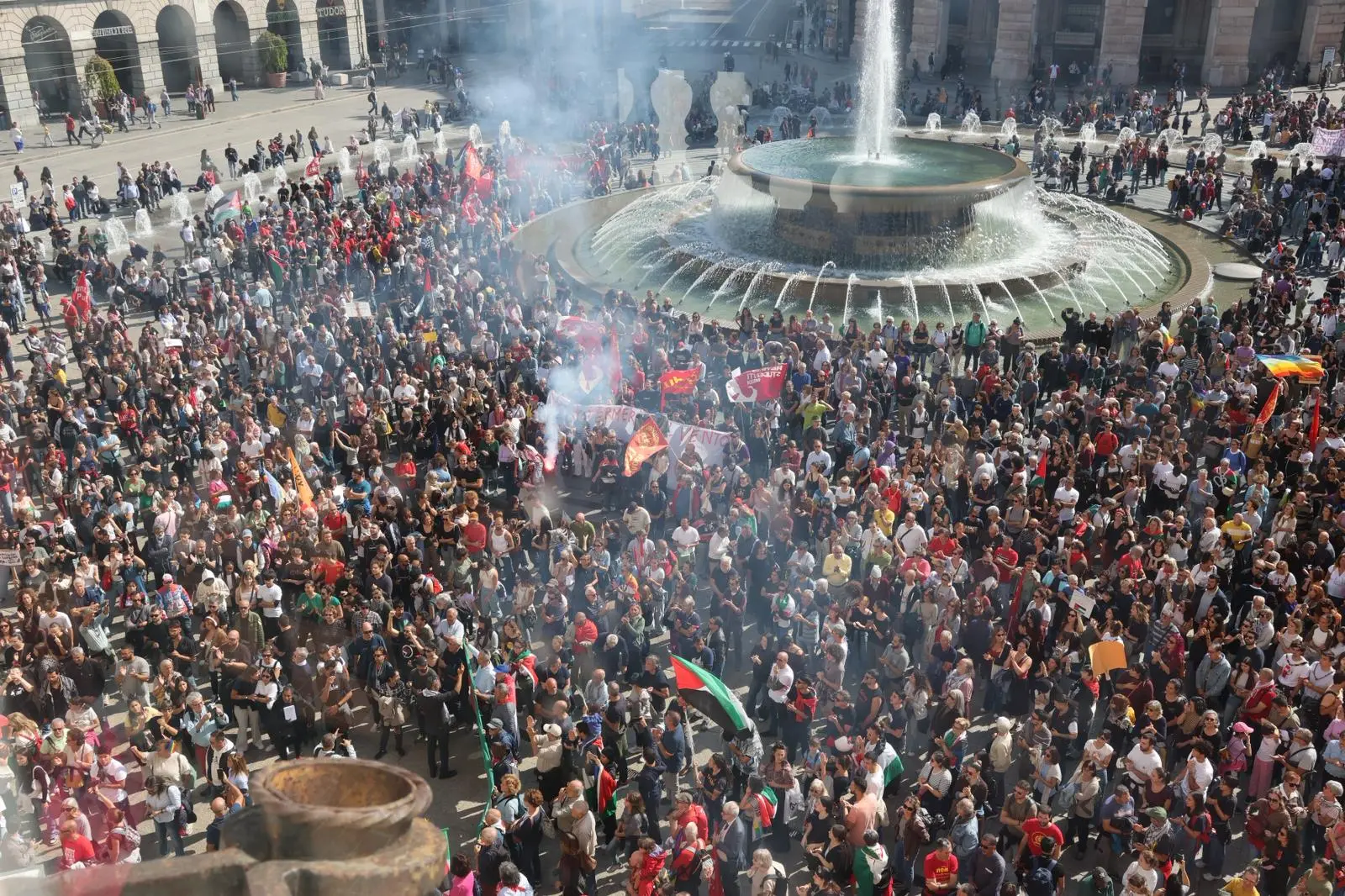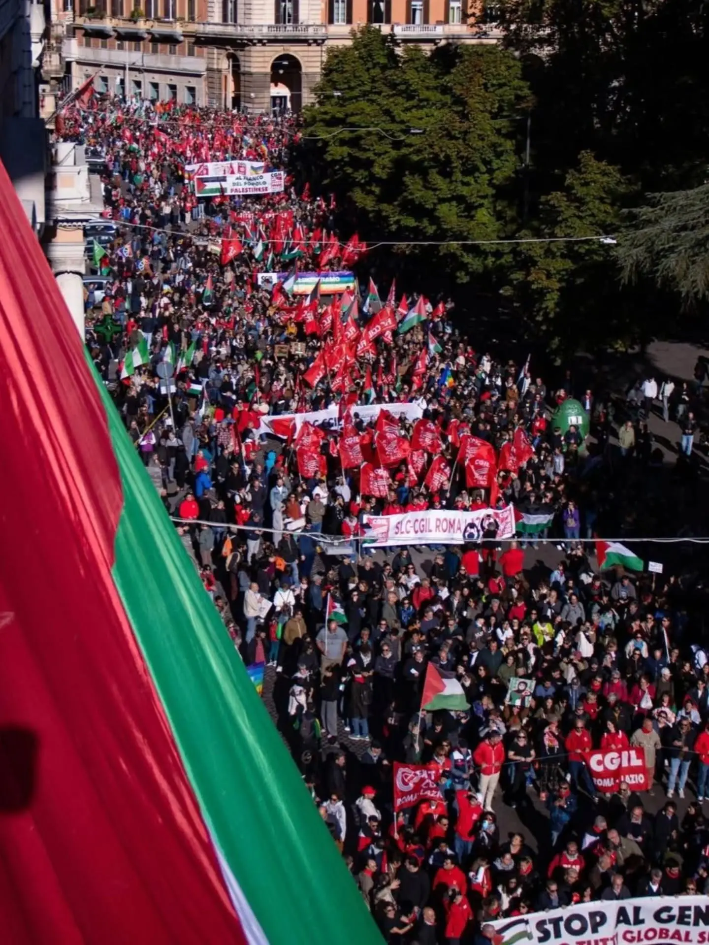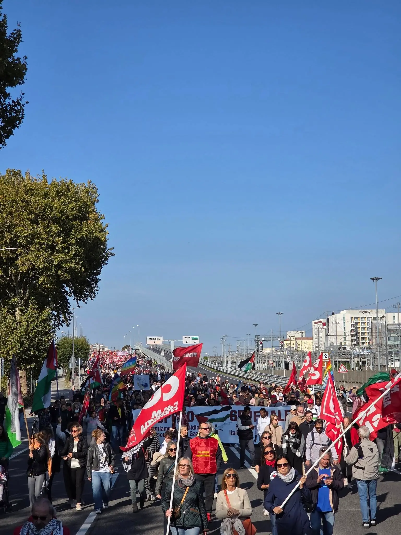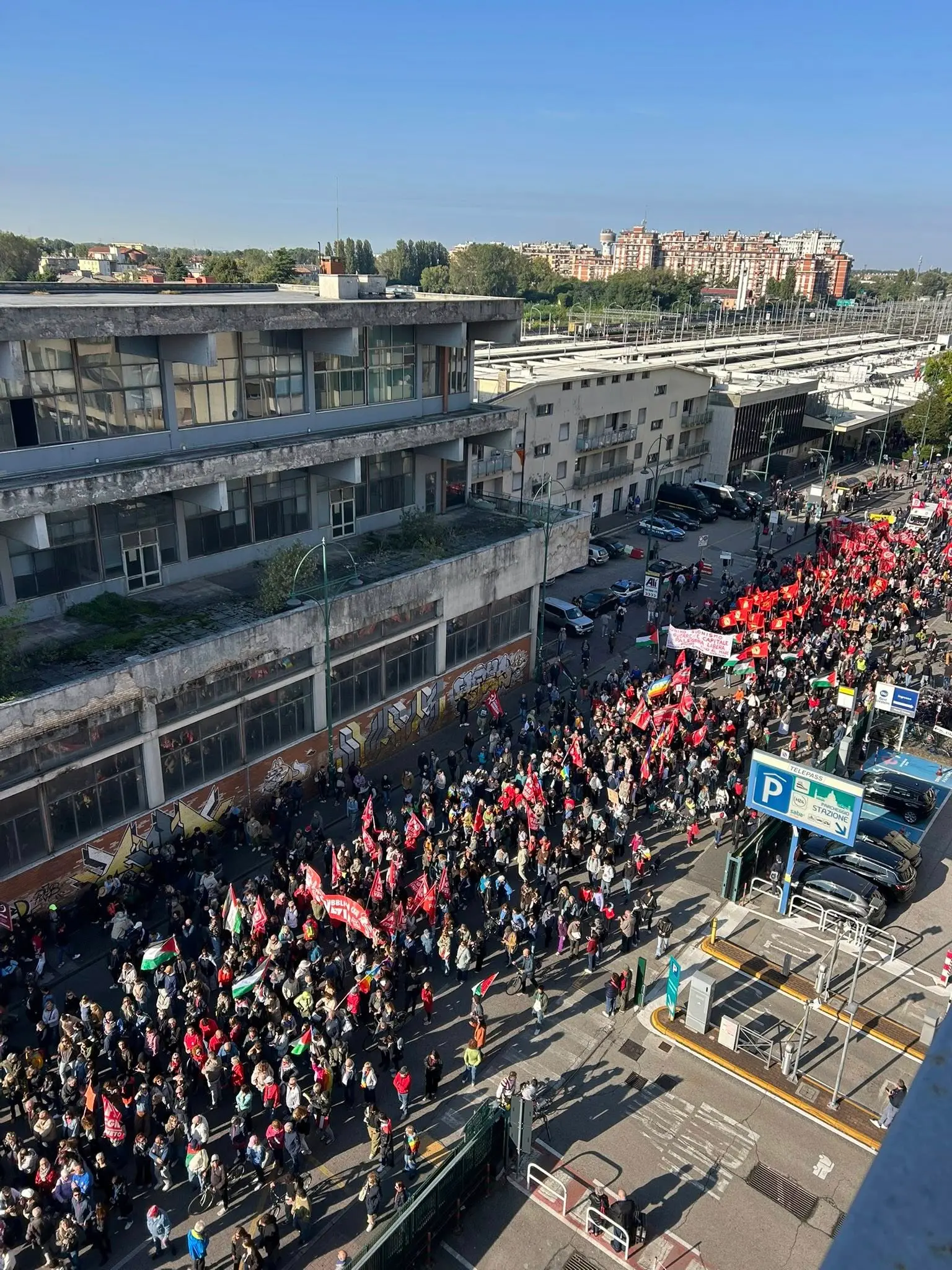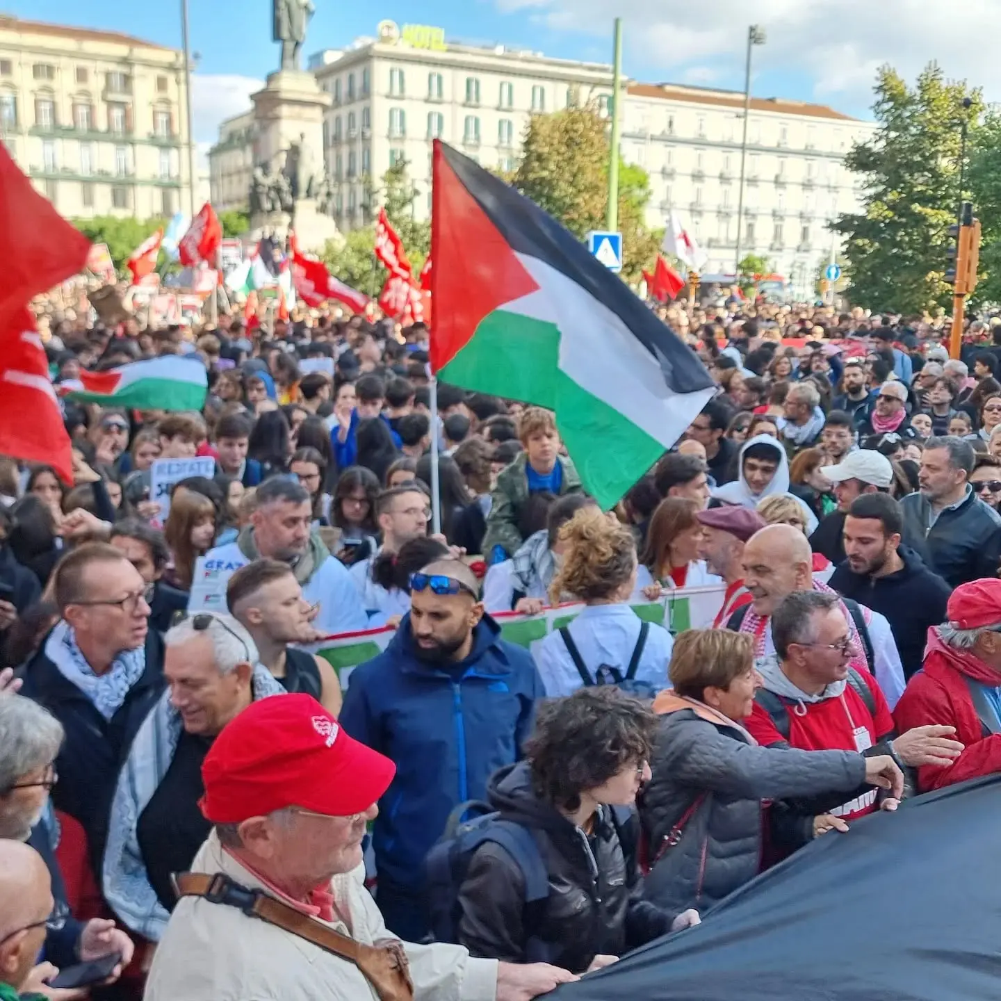 Mentre la testa del corteo avanza verso piazza Leonardo Da Vinci, la coda è ferma a Porta Venezia. 100.000 persone si sono riversate in piazza a sostegno della Global Sumud Flotilla, della pace e per riaffermare il diritto internazionale”. Luca Stanzione, segretario generale Cgil Milano: “Una grande risposta del Popolo per la Pace che chiede che si salvi un popolo, quello della Palestina, che da mesi vede cancellato il proprio diritto ad esistere. E a chi dice che stiamo scioperando fuori dalle regole, invito a leggere l'articolo 2 della legge 146 del 90. Stiamo difendendo i valori costituzionali della pace e della convivenza fra i popoli. E invece c'è chi dal governo vuole attaccare il diritto di sciopero ed è per questo che vuole offendere un intero popolo per la pace che in queste ore sta scioperando chiudendo intere linee di produzione”.