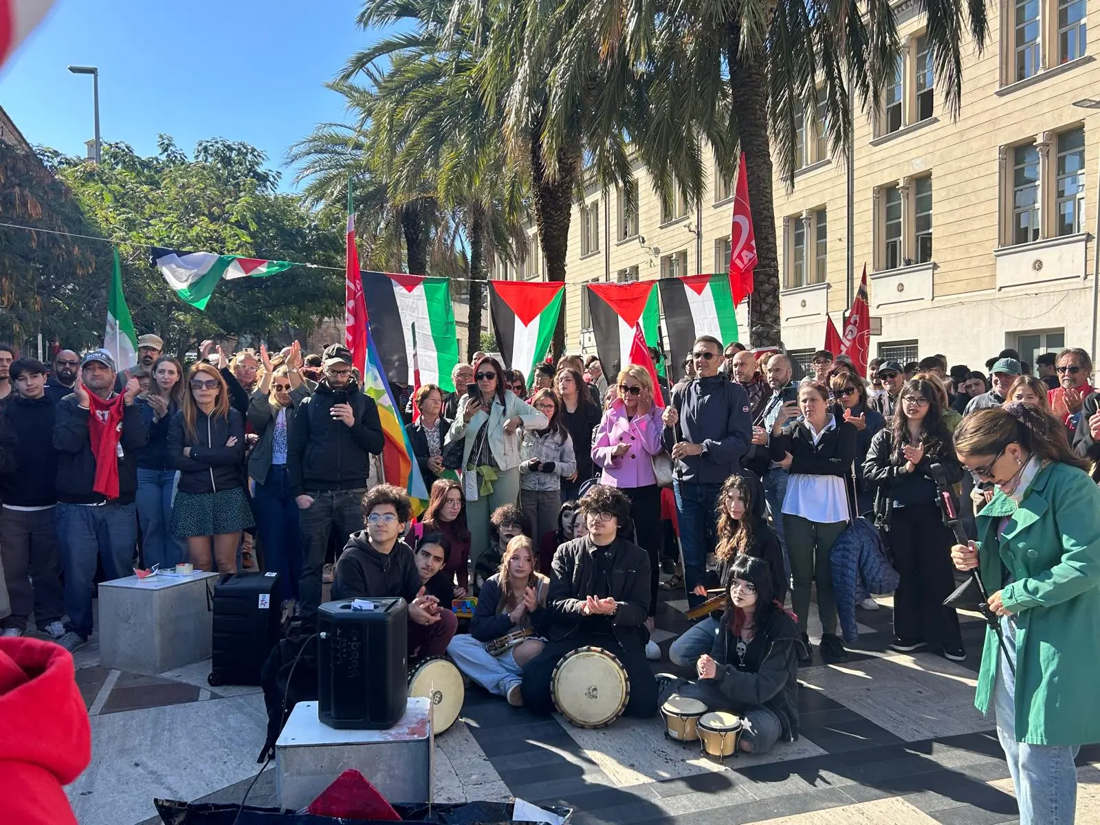Cagliari si ferma per lo sciopero generale: in almeno 30 mila hanno riempito le strade, sfilando dalle 10 da piazza Garibaldi fino a piazza del Carmine e paralizzando il traffico cittadino. Il corteo, denso di cori e bandiere, arriva a poche ore dalla manifestazione spontanea esplosa mercoledì sera dopo l’attacco alla Flotilla. In strada studenti, famiglie e attivisti, dietro le insegne palestinesi e i vessilli arcobaleno della pace. A scandire la marcia un unico grido, ripetuto senza sosta: “Free Palestine”. La giornata ha segnato un’ulteriore crescita della mobilitazione giovanile. La Rete della Conoscenza, che raccoglie Link Coordinamento Universitario e l’Unione degli Studenti, ha annunciato la piena adesione. Gli studenti hanno denunciato il “genocidio compiuto da Israele” e accusato lo Stato italiano di complicità, tra forniture di armi e rapporti commerciali mai interrotti con Tel Aviv.