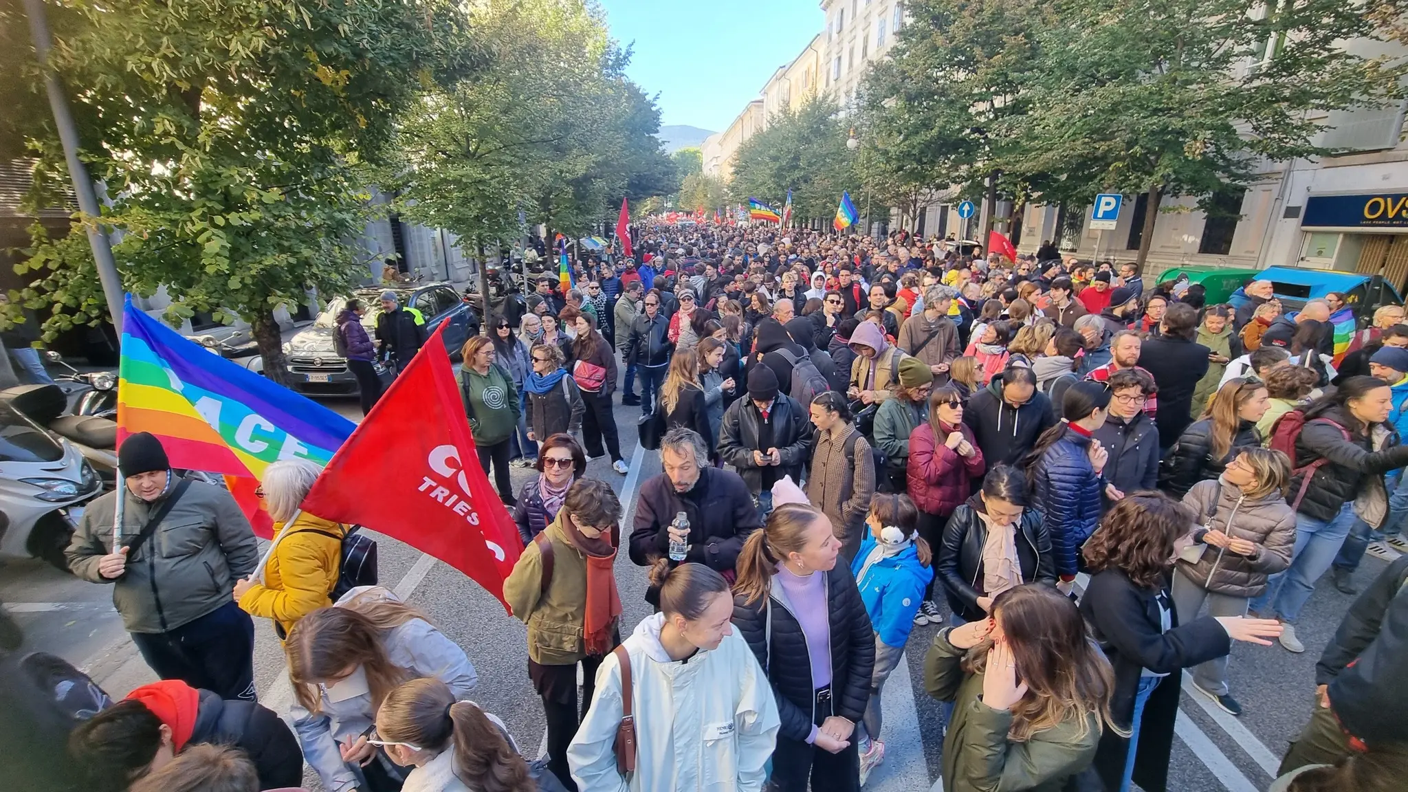 Sono oltre 4 mila i manifestanti che stanno partecipando al corteo promosso a Trieste da Cgil e Usb, assieme all’Unione degli universitari e alla Rete degli studenti medi. Il corteo è partito dal giardino pubblico di via Giulia e sta percorrendo le vie principali della città, con arrivo previsto in piazza Oberdan. “Dietro a questo sciopero - afferma il segretario generale Cgil Friuli Venezia Giulia Michele Piga – c’è la richiesta di una reazione finalmente forte e determinata, da parte dell'Italia, dell’Europa e di tutta la comunità internazionale, di fronte alla tragedia che si sta consumando a Gaza. La missione della Flotilla ha rappresentato l'unico reale tentativo di aprire corridoi umanitari per sostenere la popolazione palestinese a fronte dell'inerzia della comunità internazionale”.