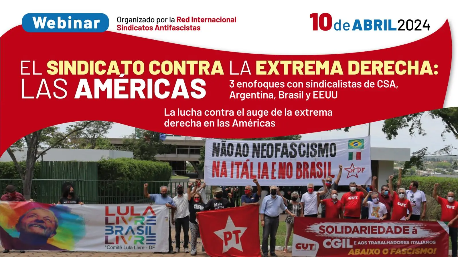 "Il sindacato contro l'estrema destra: le Americhe. Tre focus con sindacalisti della Confederazione Sindacale delle Americhe, dell'Argentina, del Brasile e degli Usa. La lotta contro l'ascesa dell'estrema destra nelle Americhe" è il titolo del webinar organizzato dalla Rete sindacale internazionale antifascista.
