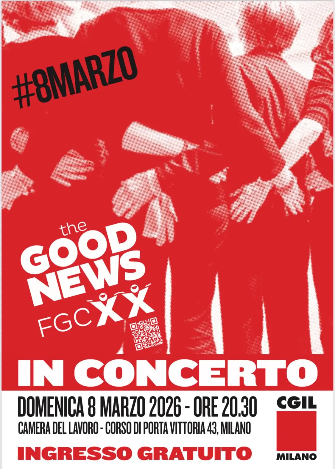 Domenica 8 marzo, alle ore 20.30, la Camera del Lavoro di Milano (Corso di Porta Vittoria 43) ospiterà il concerto di “The Good News FGC”, un coro di donne che canta per i diritti civili, per l’eliminazione della violenza di genere, per il lavoro e la pace. Pop, soul, R&B, canti di lotta: la scaletta del concerto sarà un percorso musicale femminista, queer e di emancipazione.