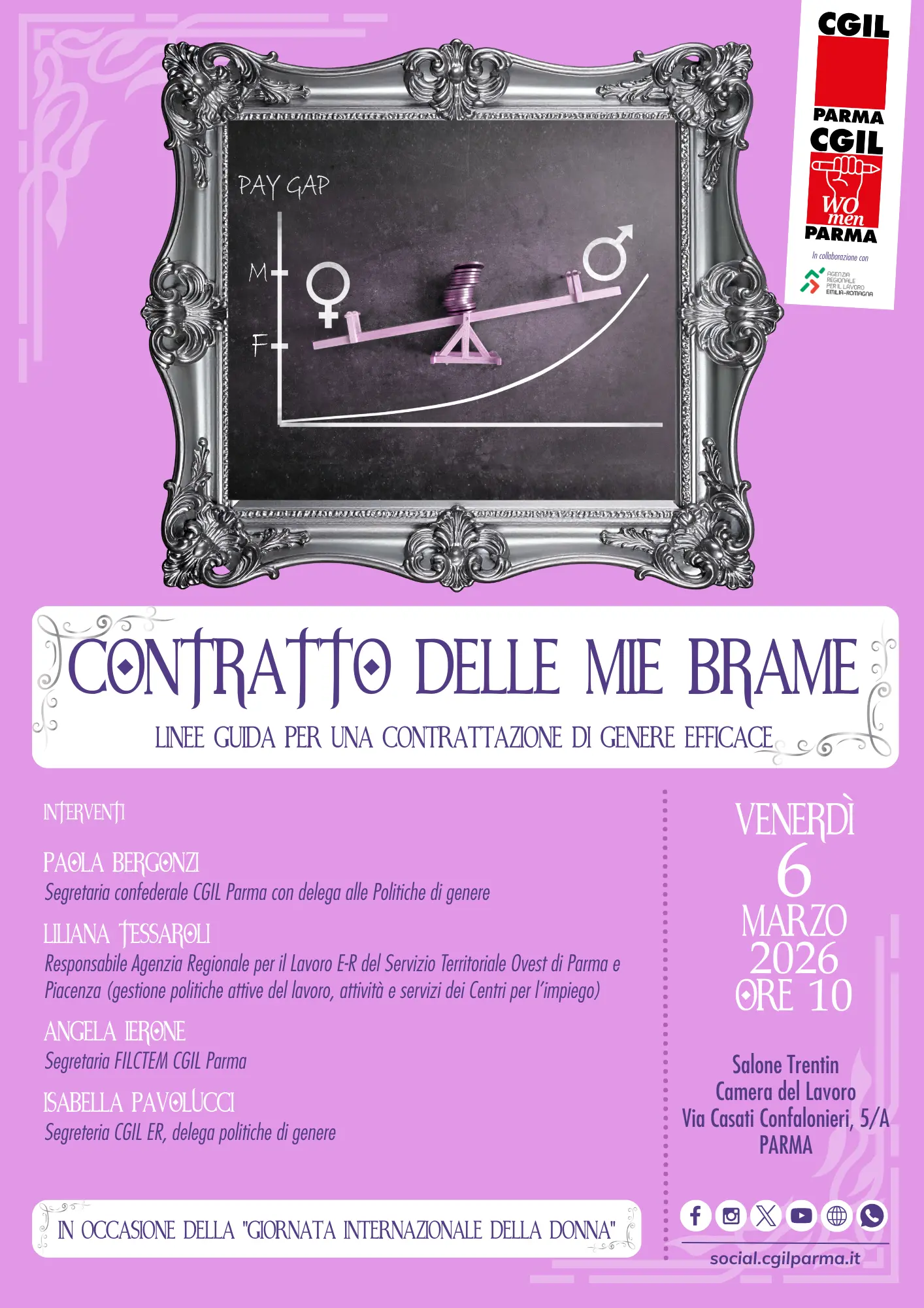 L’incontro sarà arricchito dai preziosi contributi di donne provenienti dal mondo accademico, della cultura, del sindacato e del giornalismo, appartenenti a diverse realtà internazionali, offrendo così uno spazio di confronto e approfondimento su temi di grande attualità.