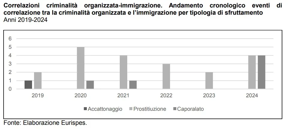 Una delle conseguenze più drammatiche segnalate dall’Eurispes è però il rischio che le vittime, una volta inghiottite dal sistema, vengano incorporate nelle stesse organizzazioni criminali. Un passaggio che non nasce da una scelta, ma da un orizzonte chiuso: debiti imposti, ricatti, documenti sequestrati, assenza di alternative. Un fenomeno che produce una spirale di illegalità che non riguarda solo le mafie, ma l’intero contesto sociale in cui queste operano.