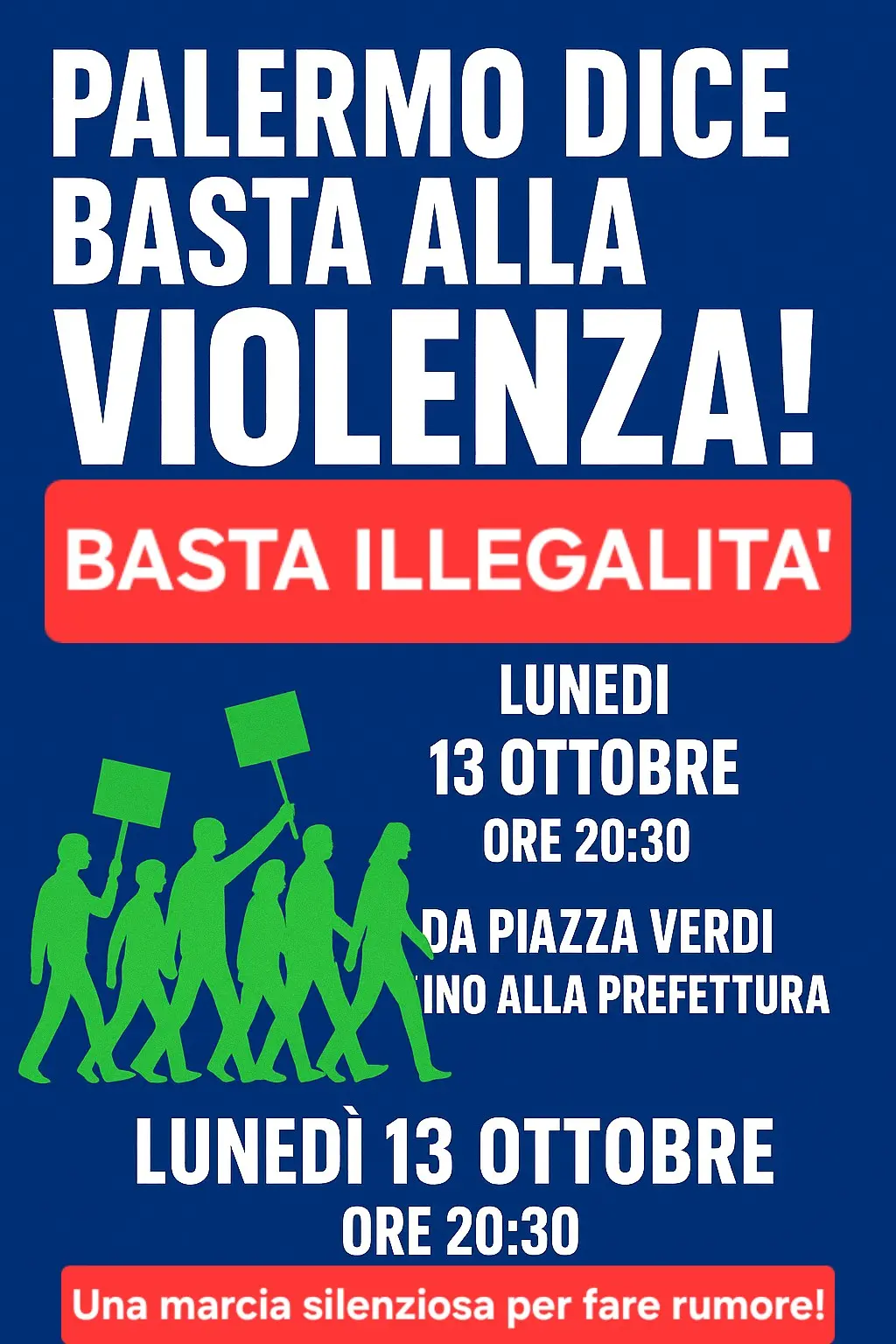 Oggi nuova marcia convocata per stasera alle 20.30 da piazza Verdi fino alla prefettura, una “marcia silenziosa per fare rumore”, promossa da Cgil, Cisl, Uil e Acli, per dire “basta alla violenza cittadina e al degrado sociale che sta soffocando la città ormai allo sbando. Facciamo appello ai cittadini onesti, che amano la propria città e che sperano in un futuro diverso per i nostri giovani, affinché partecipino – affermano i segretari generali Cgil e Cisl Palermo Mario Ridulfo e Federica Badami con il segretario regionale Uil Sicilia e Area Vasta Ignazio Baudo e il presidente Acli Palermo Francesco Todaro –, perché è giunto il momento di reagire concretamente e insieme. Servono azioni immediate per l’ordine pubblico, il disagio e le fragilità sociali”.