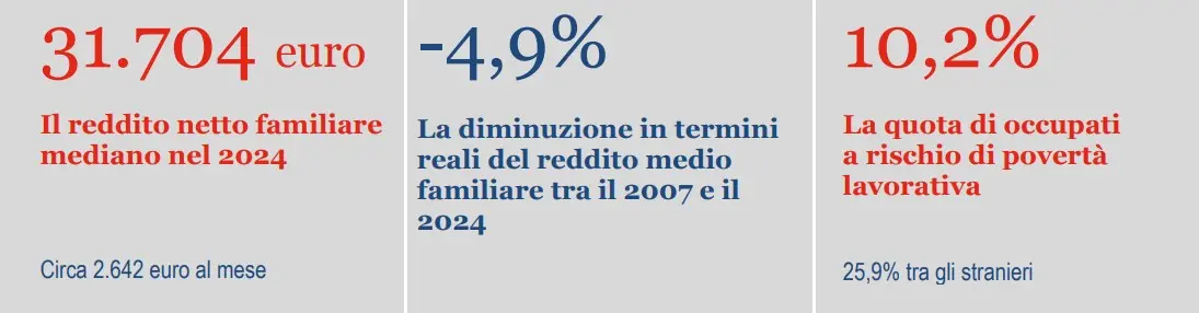 Secondo il Report “Condizioni di vita e reddito delle famiglie” il reddito mediano delle famiglie italiane è pari a 31.704, corrisponde a circa 2.642 euro al mese. Sempre l’Istat afferma che sono a rischio povertà le famiglie il cui reddito dello scorso anno è pari al 60% del reddito mediano (13.327); ebbene in questa terribile condizione si trova oltre il 18% della popolazione italiana. Ma la cosa più grave, che dovrebbe non far dormire Meloni e i suoi ministri, è che dal 2007 al 2004 il reddito degli italiani e delle italiane ha perso il 4,7% del suo valore. Se non è questa questione salariale ci domandiamo cosa sia.
