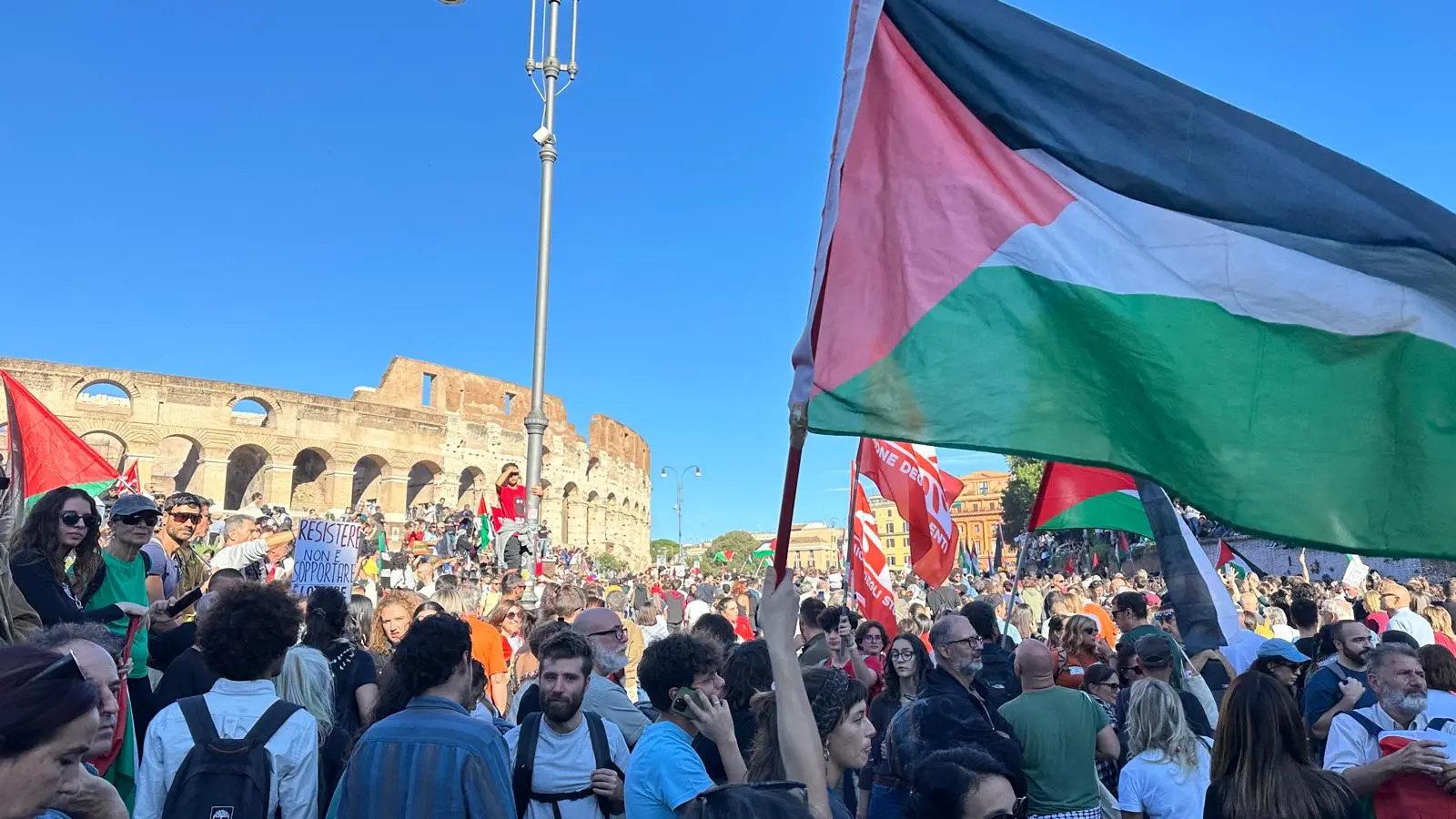 Vasta adesione alla manifestazione nazionale di oggi, 4 ottobre, convocata dalle associazioni palestinesi a Roma. Decine di migliaia di persone si sono riversate nelle strade della capitale, dopo lo sciopero generale di venerdì 3 ottobre che ha portato oltre due milioni in cento piazza. Continua con forza la mobilitazione per Gaza e per il popolo palestinese, vittima del genocidio israeliano. Gli organizzatori annunciano: “Siamo oltre 600mila”.