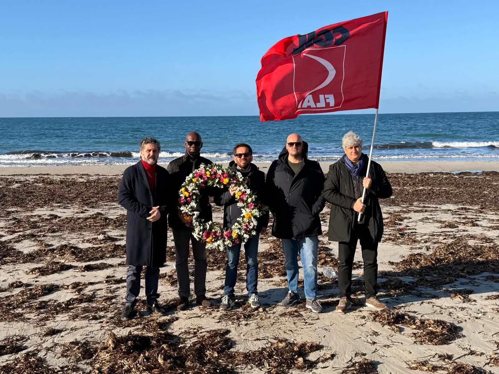 Una corona di fiori sulla spiaggia di Petrosino per ricordare i migranti morti in mare durante il ciclone Harry. Le vittime “di politiche migratorie fallimentari dell’Europa e dell’Italia e dell’indifferenza”, i cui corpi riaffiorano in questi giorni nei litorali della Sicilia. A deporla stamani, 24 febbraio, una delegazione della Flai Cgil Sicilia e nazionale che, insieme al sindaco del comune del trapanese, Giacomo Anastasi, ha voluto così testimoniare lo sgomento di fronte alle tragedie che stanno trasformando il mare Mediterraneo in un cimitero di persone che cercano di sfuggire alla fame e alle guerre nei loro paesi d’origine e trovano invece la morte.
