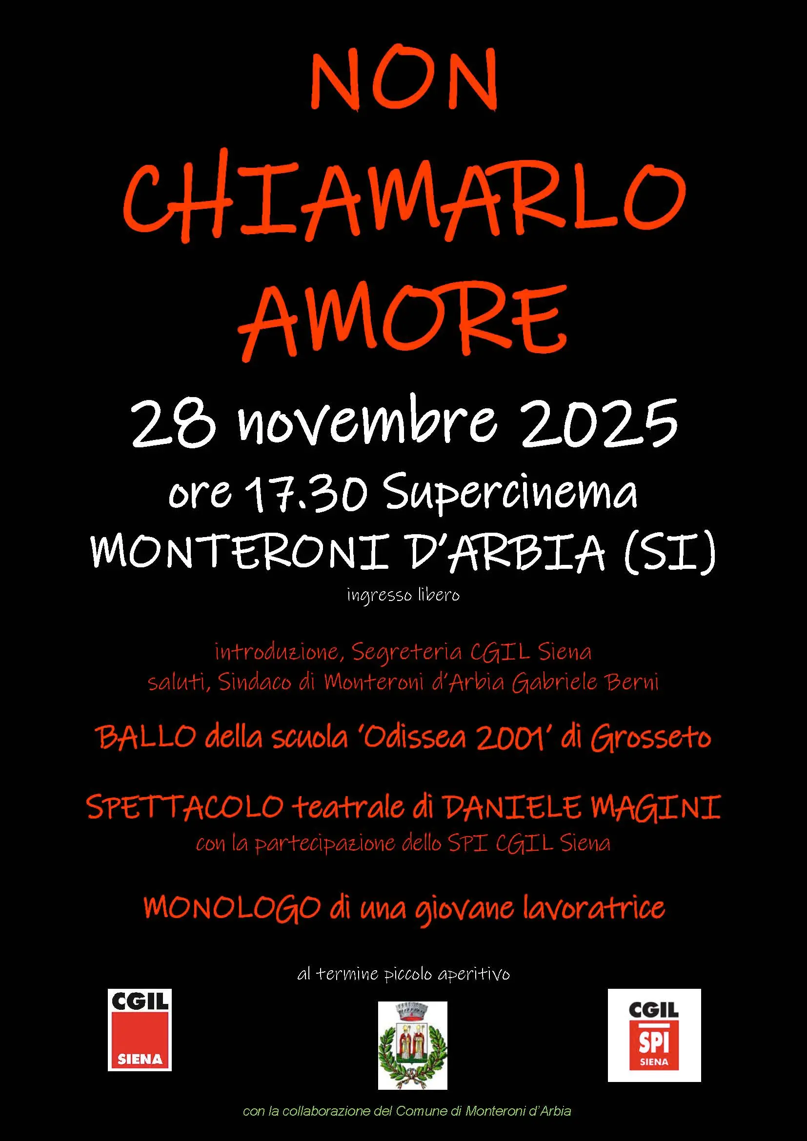 Il 28 novembre a Monteroni d’Arbia: “Non chiamarlo amore”.