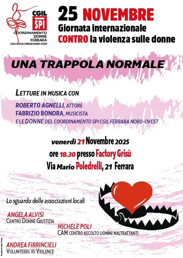 Per la giornata internazionale contro la violenza alle donne – 25 novembre – sono cinque le iniziative co-promosse dal sindacato pensionati Spi Cgil, Modena insieme ad altre associazioni ed enti.