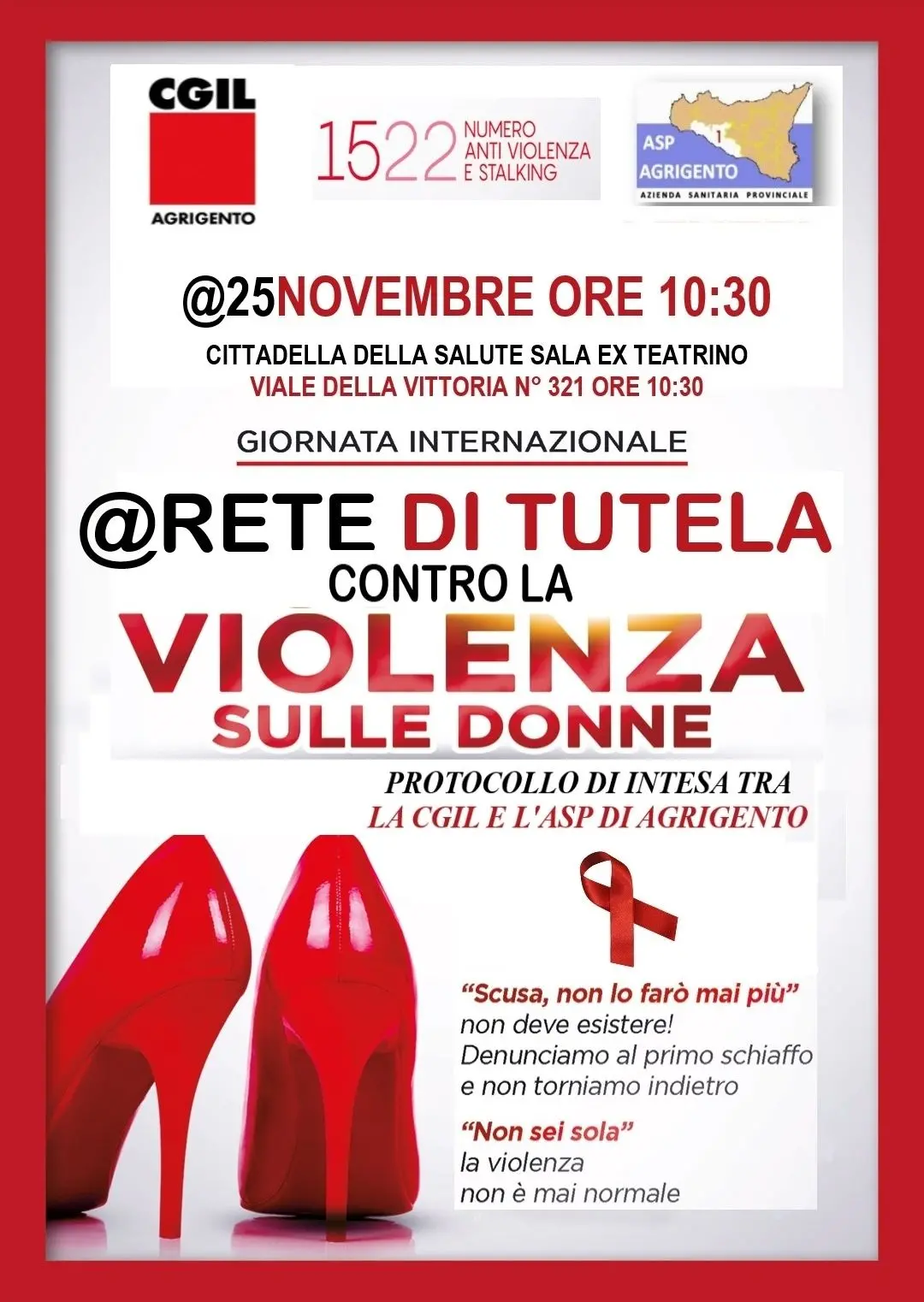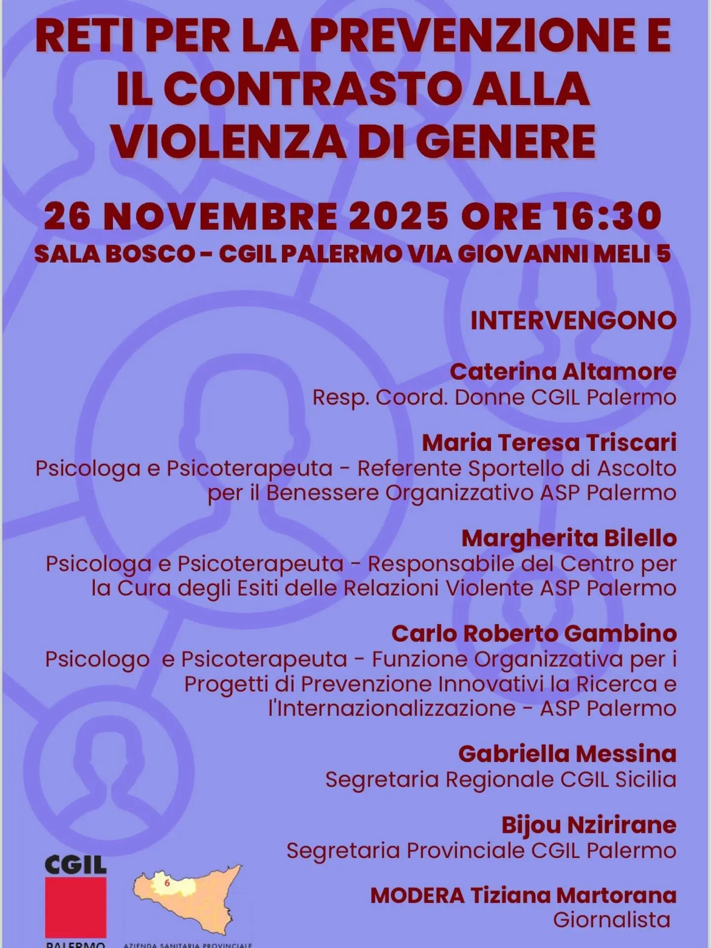 A Brindisi assemblea pubblica per rafforzare la rete dei servizi, dei consultori e dei centri antiviolenza, con esperte, delegate e dirigenti sindacali dal titolo “Quali presidi territoriali contro la violenza di genere”. L’iniziativa si terrà martedì 25 novembre 2025 alle ore 16, presso la Sala Appia della Asl di Brindisi in via Napoli. L’incontro vuole mettere al centro il tema dell’accesso ai servizi, della qualità delle cure e del potenziamento dei presidi territoriali: consultori, centri antiviolenza, équipe multidisciplinari e tavoli istituzionali.