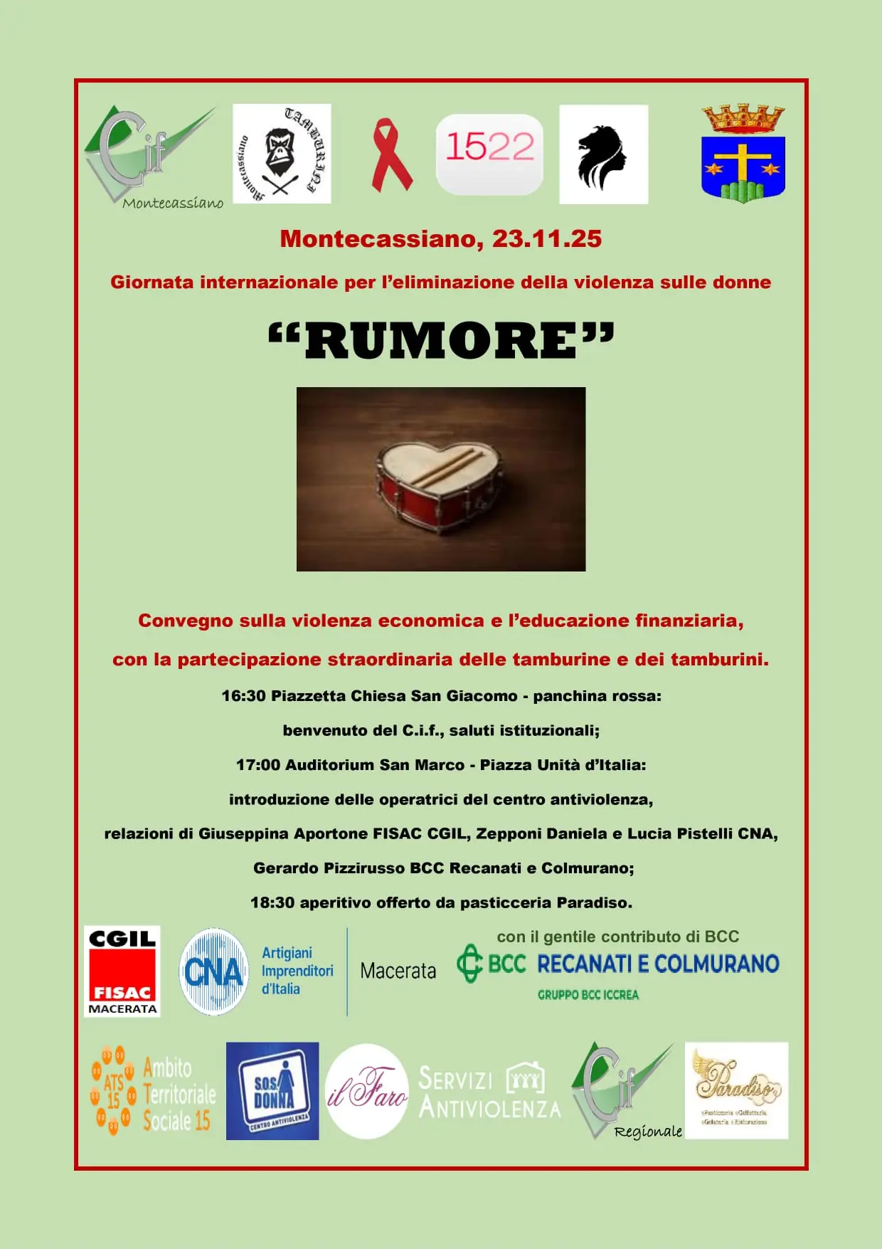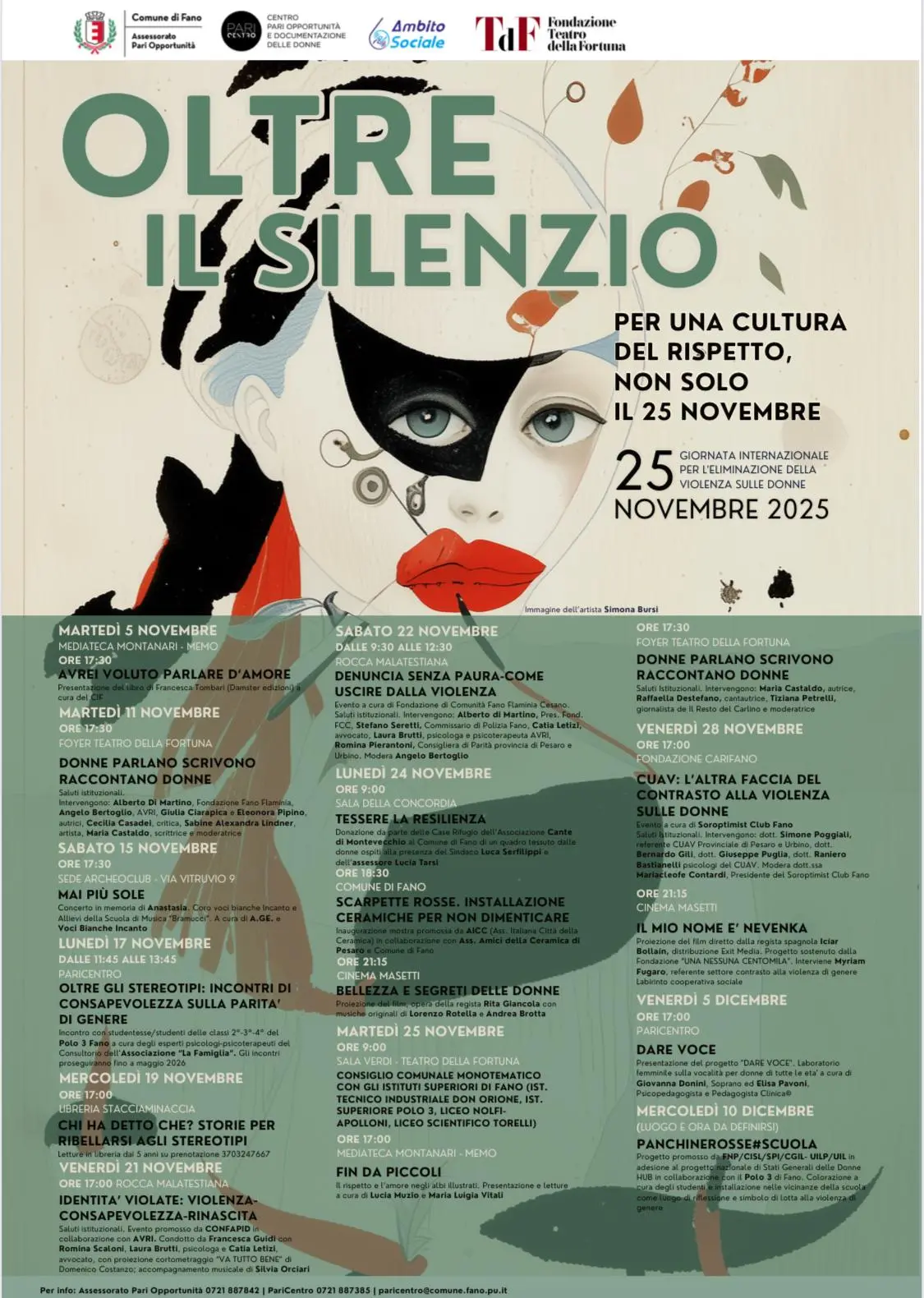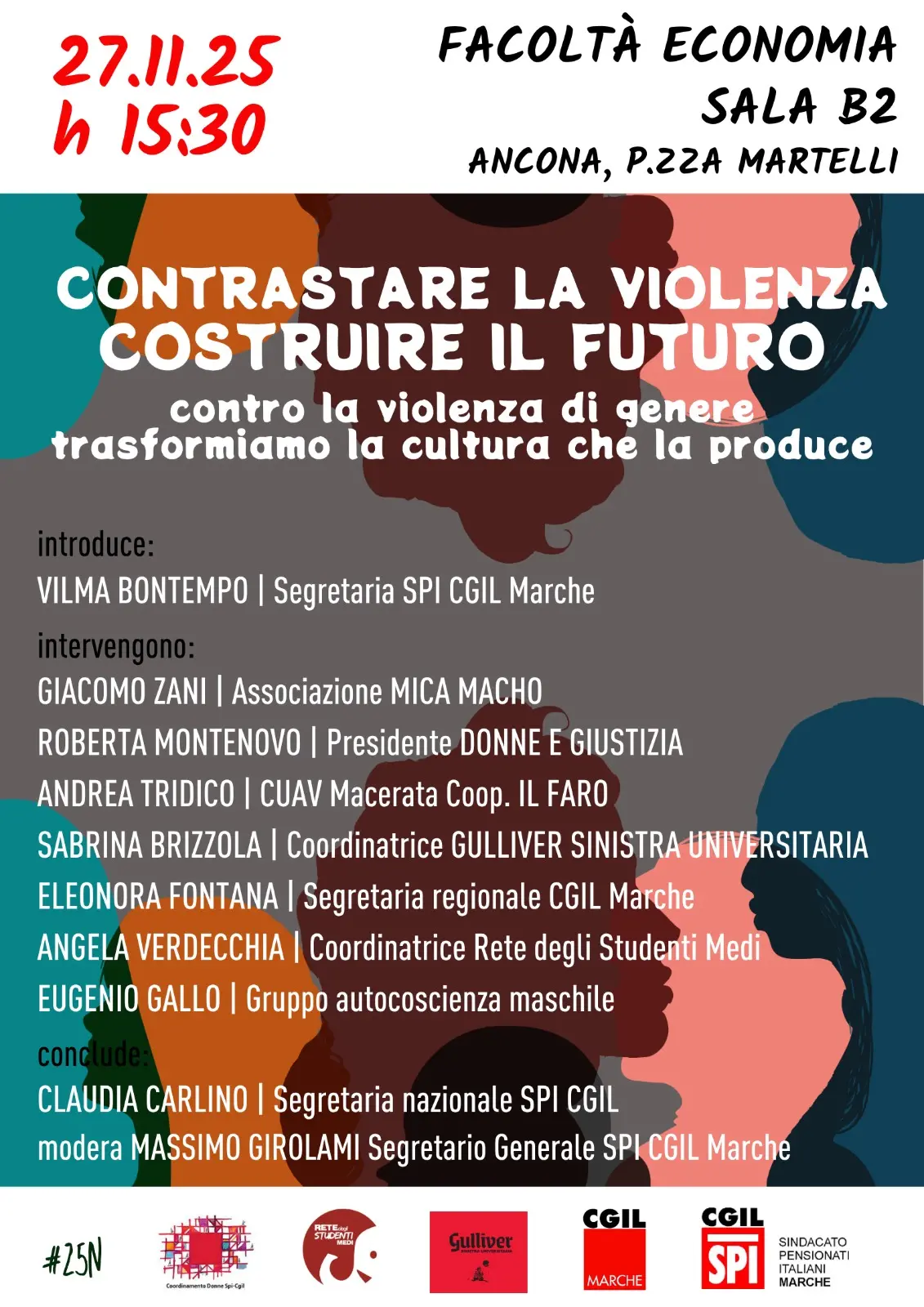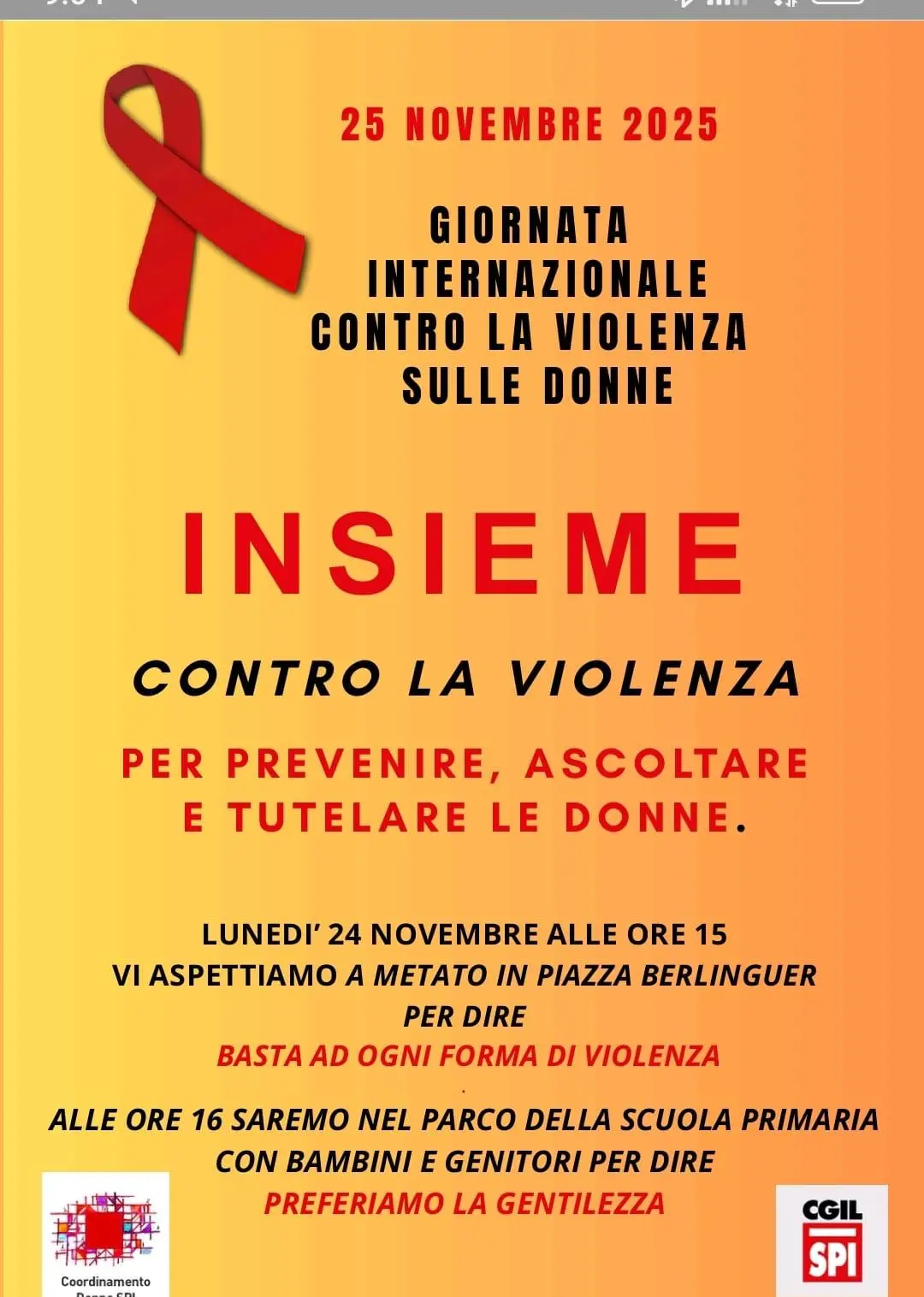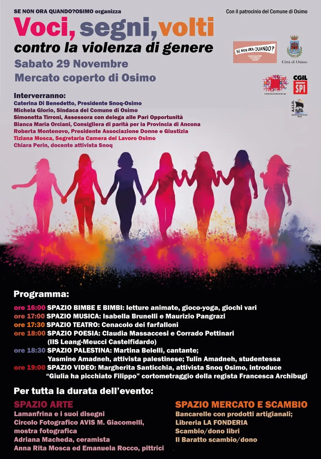A Senigallia l’appuntamento è il 25 novembre in Piazza Roma dalle 17:00 alle 19:30 con un presidio aperto alla condivisione con altre associazioni che lottano per parità di diritti, rispetto e dignità delle donne. L’iniziativa è organizzata dal coordinamento donne dello Spi Cgil.
