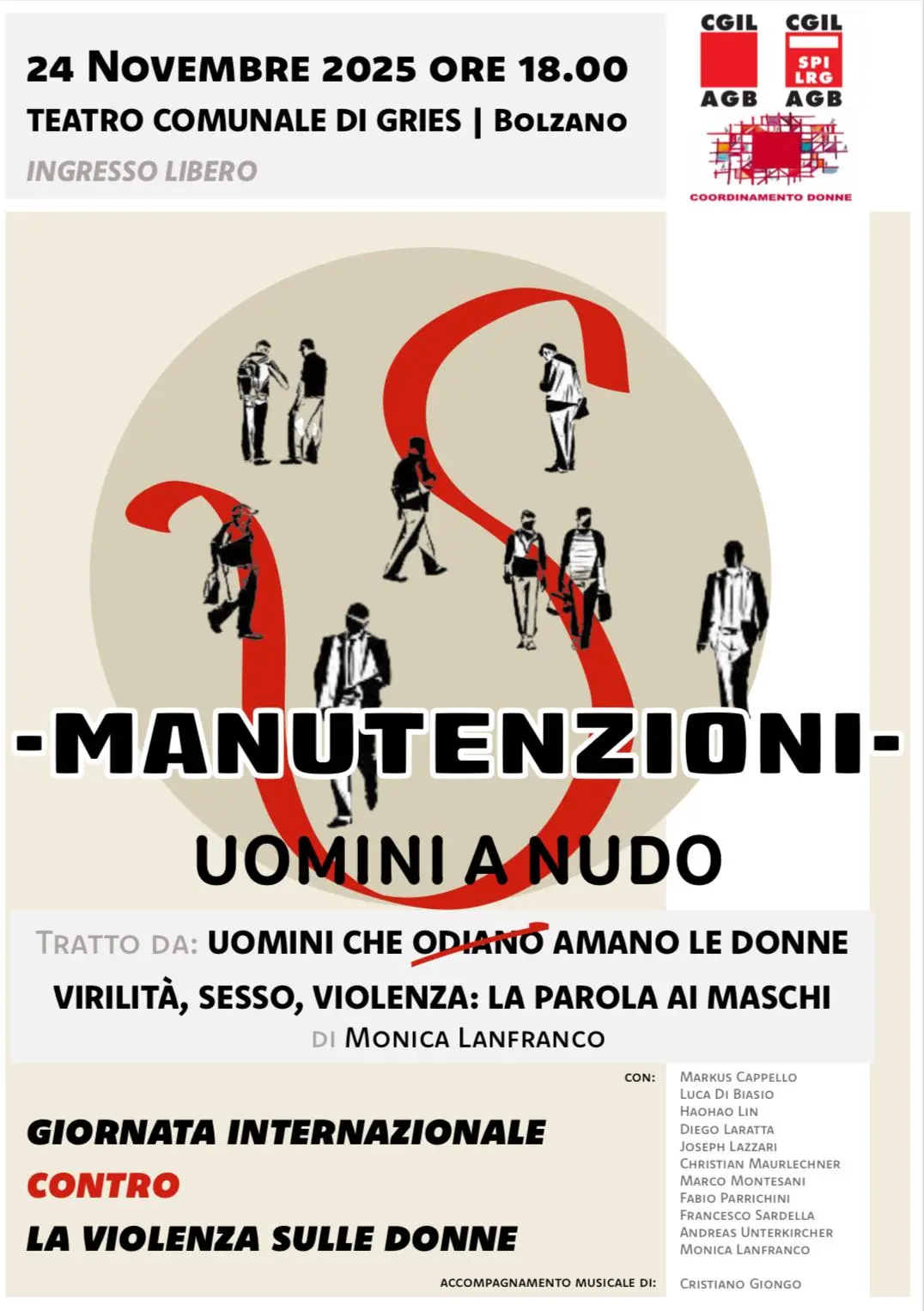 In occasione dello spettacolo teatrale si potrà contribuire al fondo “ La violenza non è un destino” a sostegno di donne vittime di violenza e dei loro figli gestito da Famiglia Materna in collaborazione con Punto d’Approdo, Onlus. Tutte le informazioni su www.cgil.tn.it