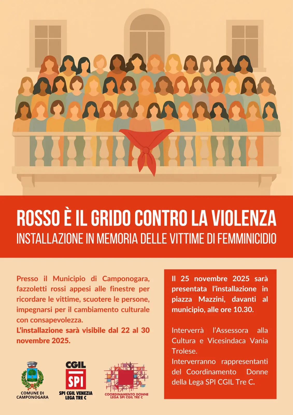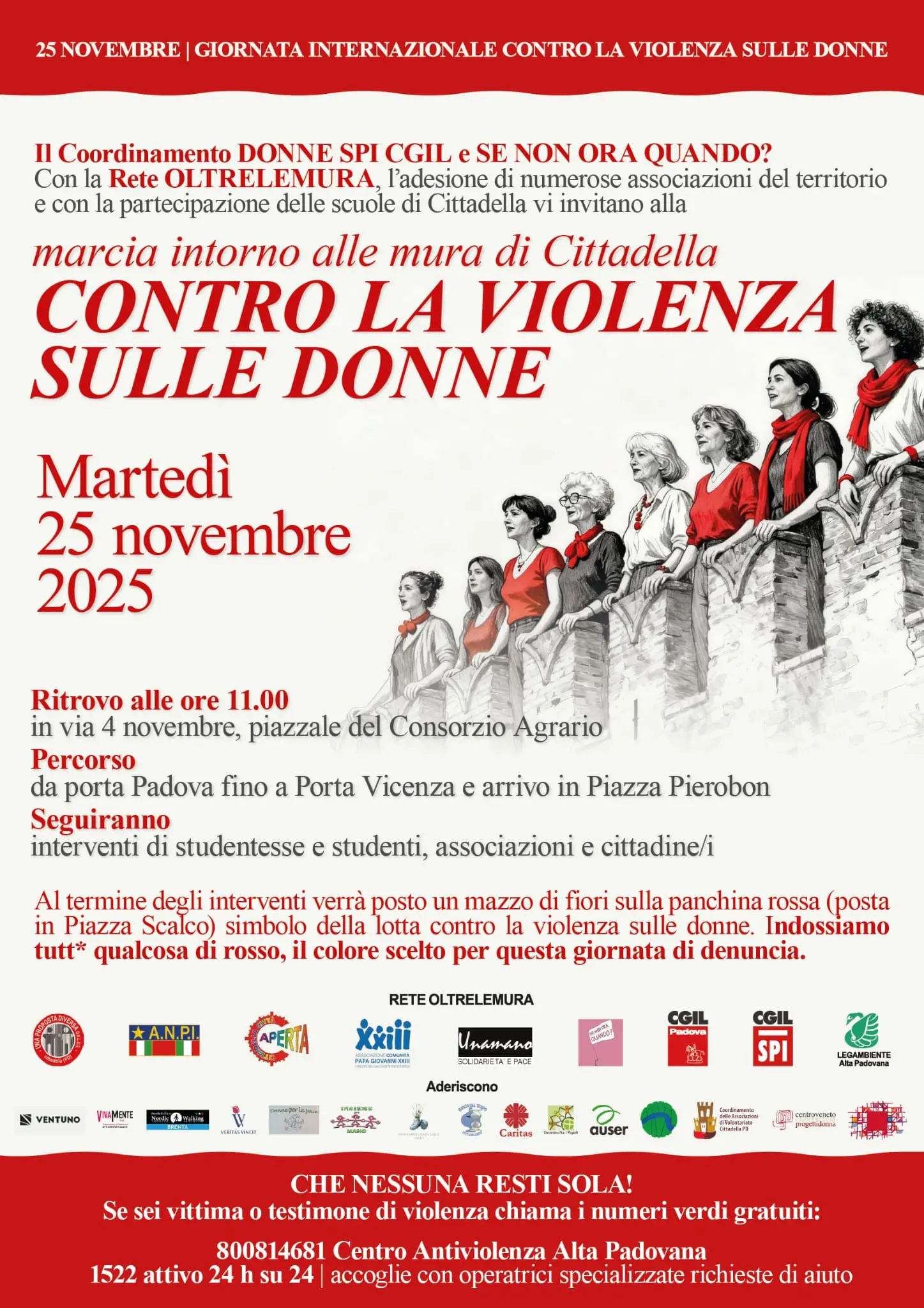 “Quest’anno – spiega la segretaria confederale della Cgil di Padova, Marianna Cestaro – l’iniziativa ha anche lo scopo di porre un accento particolare sulla violenza digitale, una minaccia sempre più diffusa, subdola e purtroppo fin troppo sottovalutata. Episodi recenti, come l'emergere di fenomeni quali ‘mia moglie’ e ‘phica.eu’, hanno messo in luce quanto questa forma di violenza possa avere effetti reali e devastanti sulla vita delle vittime, spesso minorenni o giovani donne. Con questo flash mob ci poniamo due obiettivi: informare e sensibilizzare la cittadinanza di Padova sulla gravità della violenza digitale e sulle sue manifestazioni e sollecitare una profonda riflessione sugli impatti psicologici e sociali che tali azioni virtuali producono nel mondo reale”.