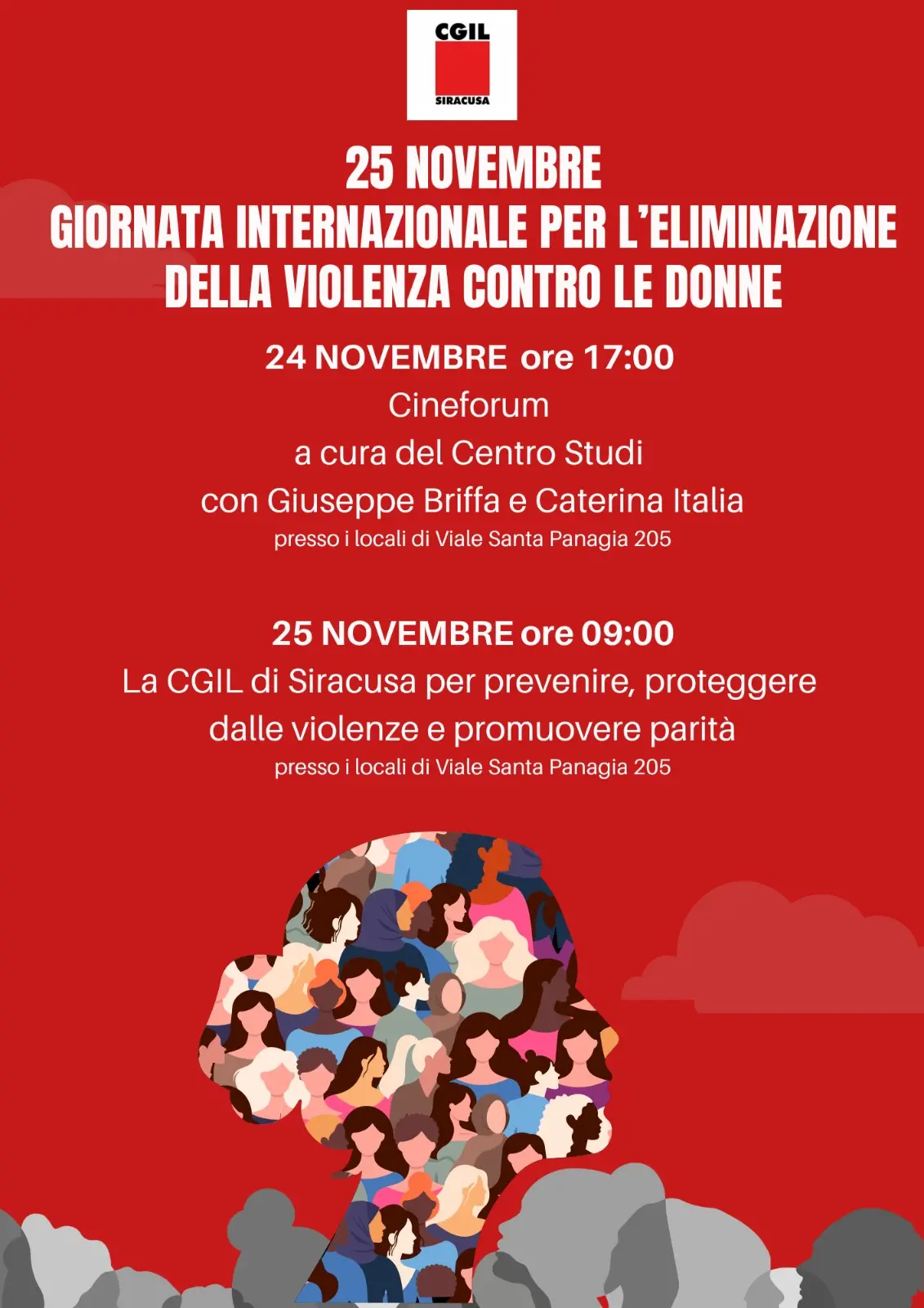 In occasione della Giornata internazionale per l’eliminazione della violenza contro le donne, la Cgil Catania e il coordinamento donne della Cgil promuovono due giornate di confronto sul tema cruciale della violenza di genere e la responsabilità collettiva: il 25 novembre, l’assemblea delle delegate sarà il cuore dell’iniziativa sindacale, mentre il pomeriggio precedente, 24 novembre, si terrà una tavola rotonda dedicata alle testimonianze, alle narrazioni e agli strumenti culturali necessari per trasformare le ferite in consapevolezza attiva.