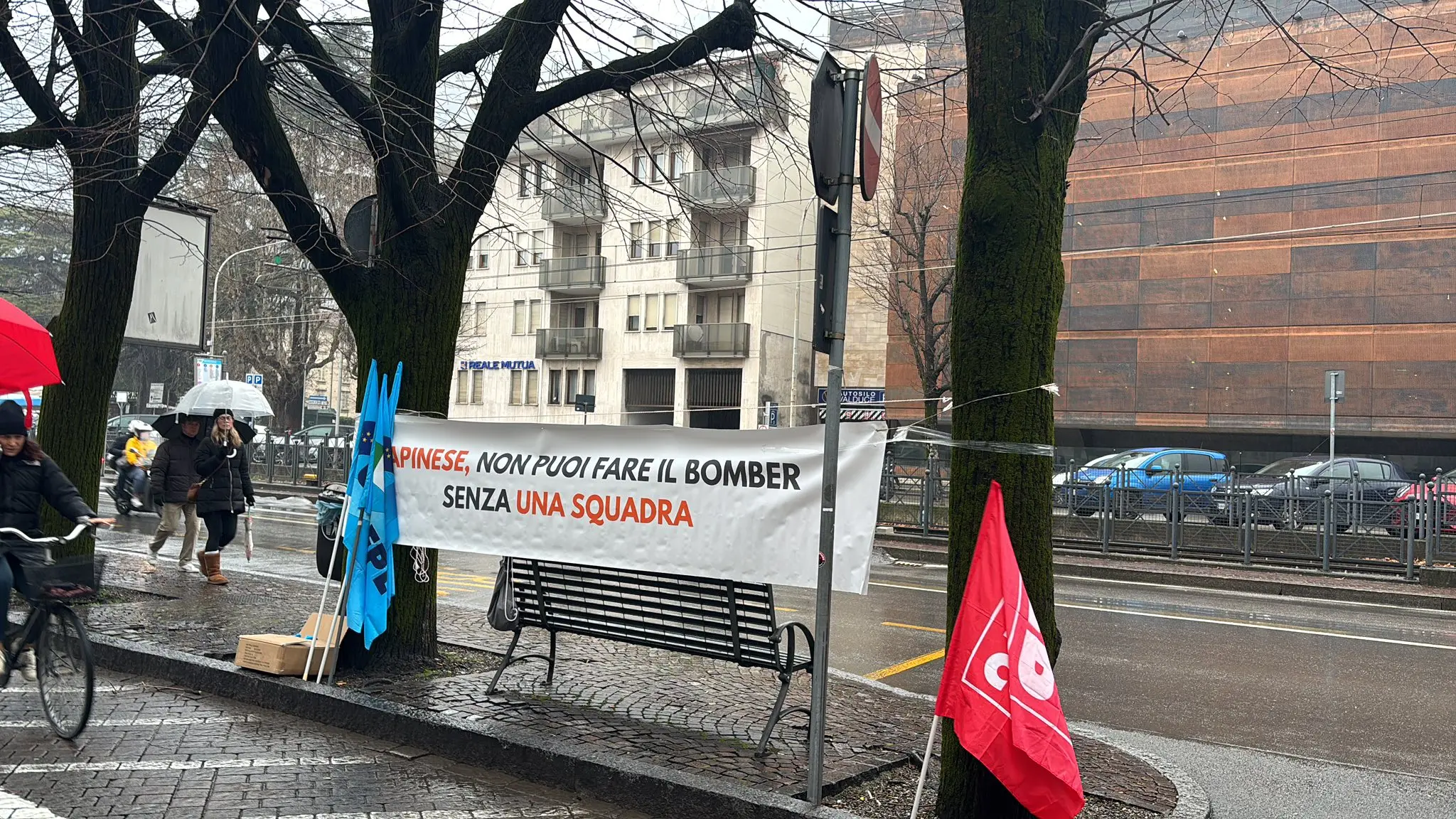 Ampia la partecipazione al presidio culminato in un flash mob, alta l’adesione allo sciopero. Per ricordare al primo cittadino che “anche un bomber senza una squadra non va da nessuna parte”. In un momento in cui il piccolo Como batte gli squadroni di serie A – proprio ieri sera ha eliminato dalla Coppa Italia il Napoli scudettato – i lavoratori hanno indossato maglie da calciatori che indicavano, sulle spalle, il numero della discordia, quel 179 mila (179K) che, per il sindacato, potrebbe accontentare tutti e non solo una piccola parte.
