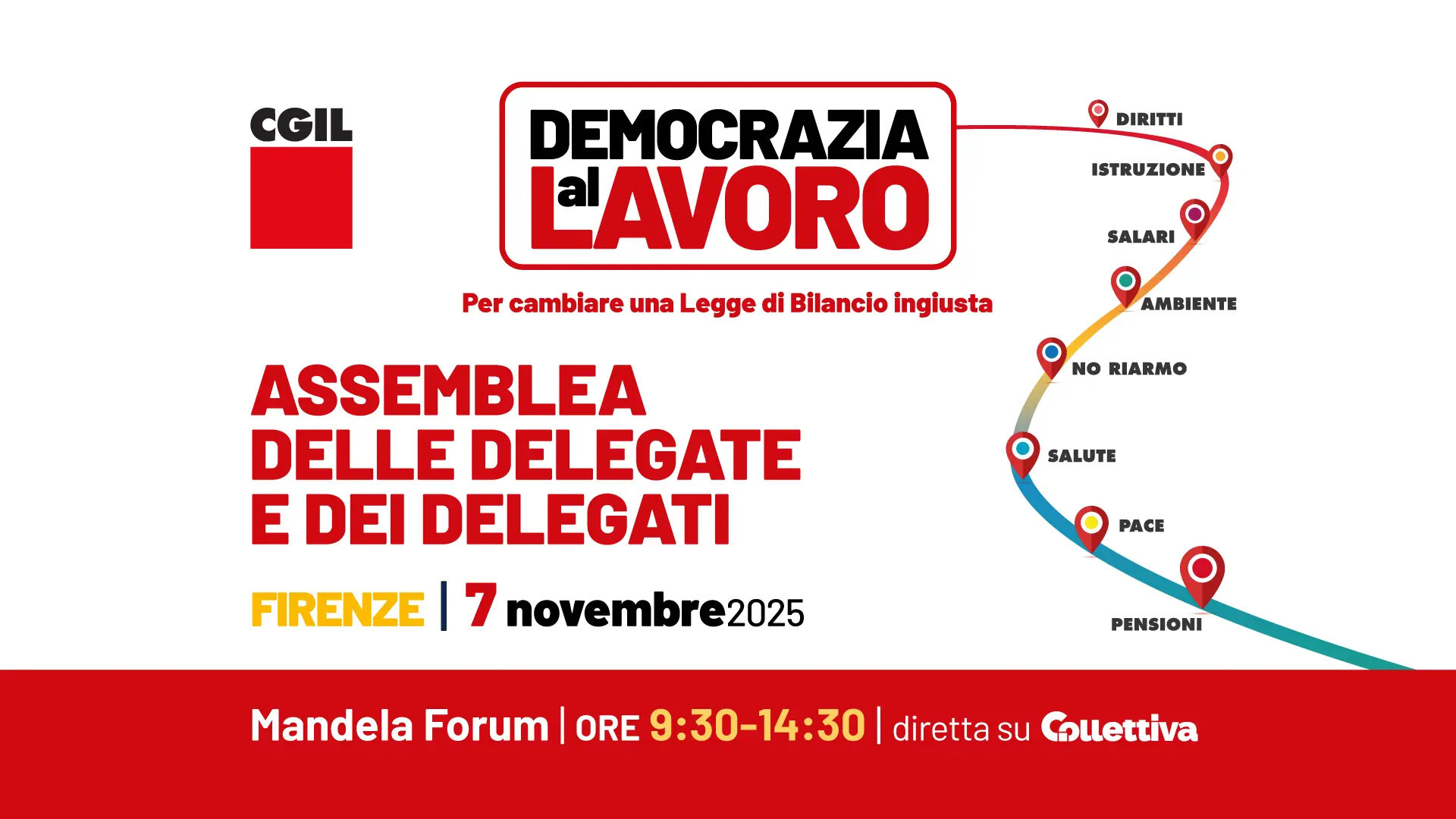 Per cambiare una Legge di Bilancio ingiusta” la Cgil convoca a Firenze, il prossimo 7 novembre, l’assemblea delle delegate e dei delegati ‘Democrazia al lavoro’ che sarà conclusa dal segretario generale, Maurizio Landini.