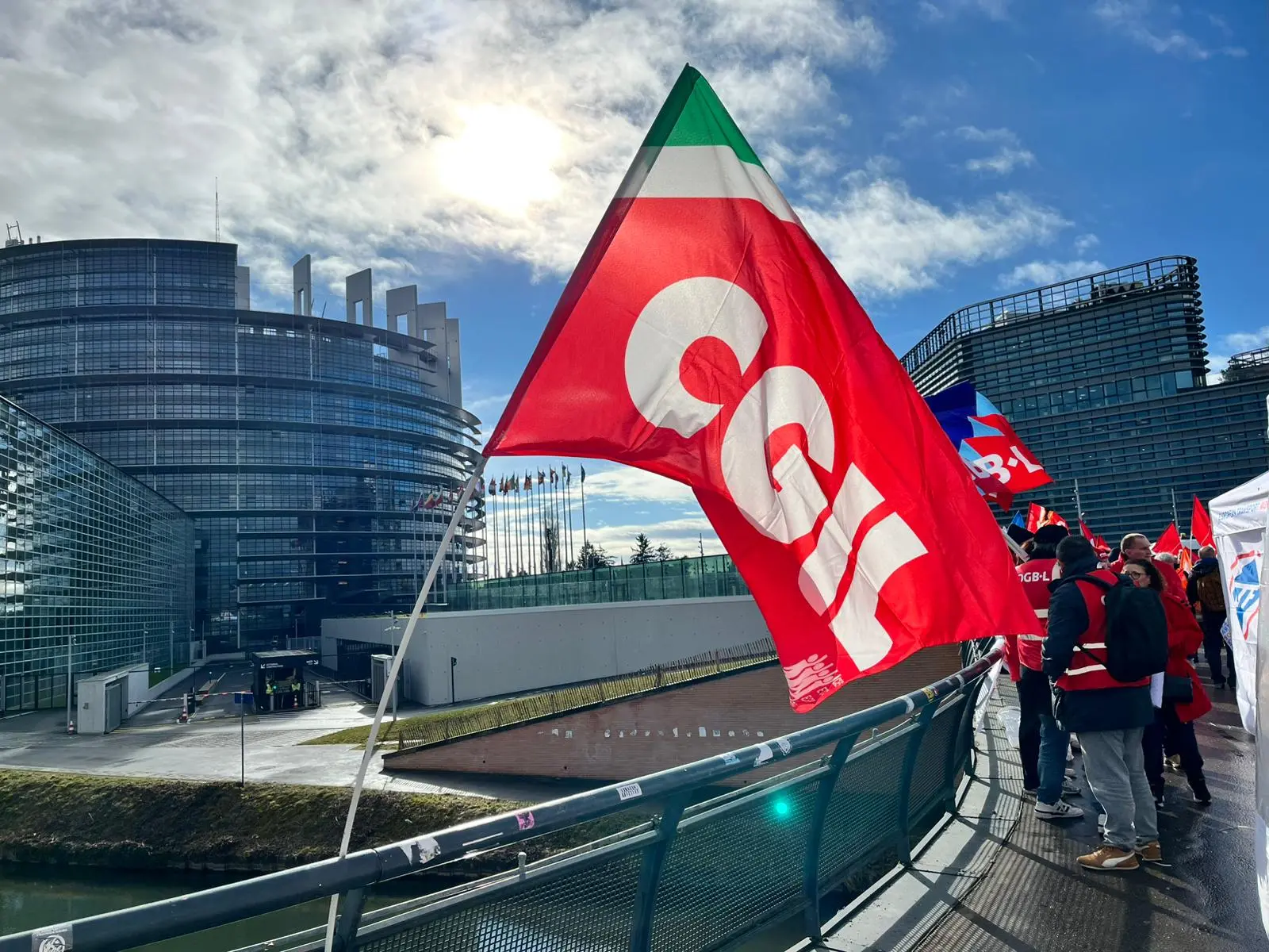 Una delegazione di sindacalisti italiani ed europei con la Ces, a 48 ore dal voto che si terrà domani a Strasburgo, ha manifestato con un presidio davanti al Parlamento, al quale è seguito un incontro con le Federazioni e alcuni europarlamentari.
