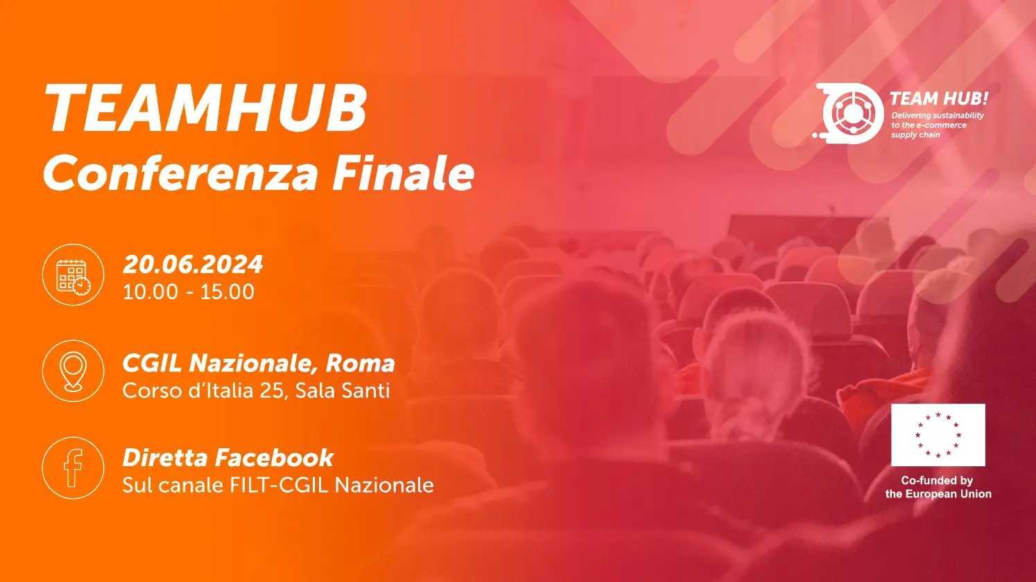 Giovedì 20 giugno alle ore 10.00 si terrà a Roma la conferenza finale del progetto europeo TeamHub, presso la Sala Santi della sede nazionale della Cgil. TeamHub è un progetto sostenuto dalla direzione generale per l'Occupazione, gli affari sociali e l'inclusione della Commissione europea, che ha utilizzato strumenti di ricerca documentale ed empirica e attività di mutuo apprendimento, coinvolgendo un consorzio transeuropeo di università, istituti di ricerca e sindacati, al fine di analizzare i trend e le sfide della filiera dell’e-commerce e della logistica in nove Paesi europei (Belgio, Estonia, Francia, Finlandia, Germania, Grecia, Italia, Polonia e Spagna).