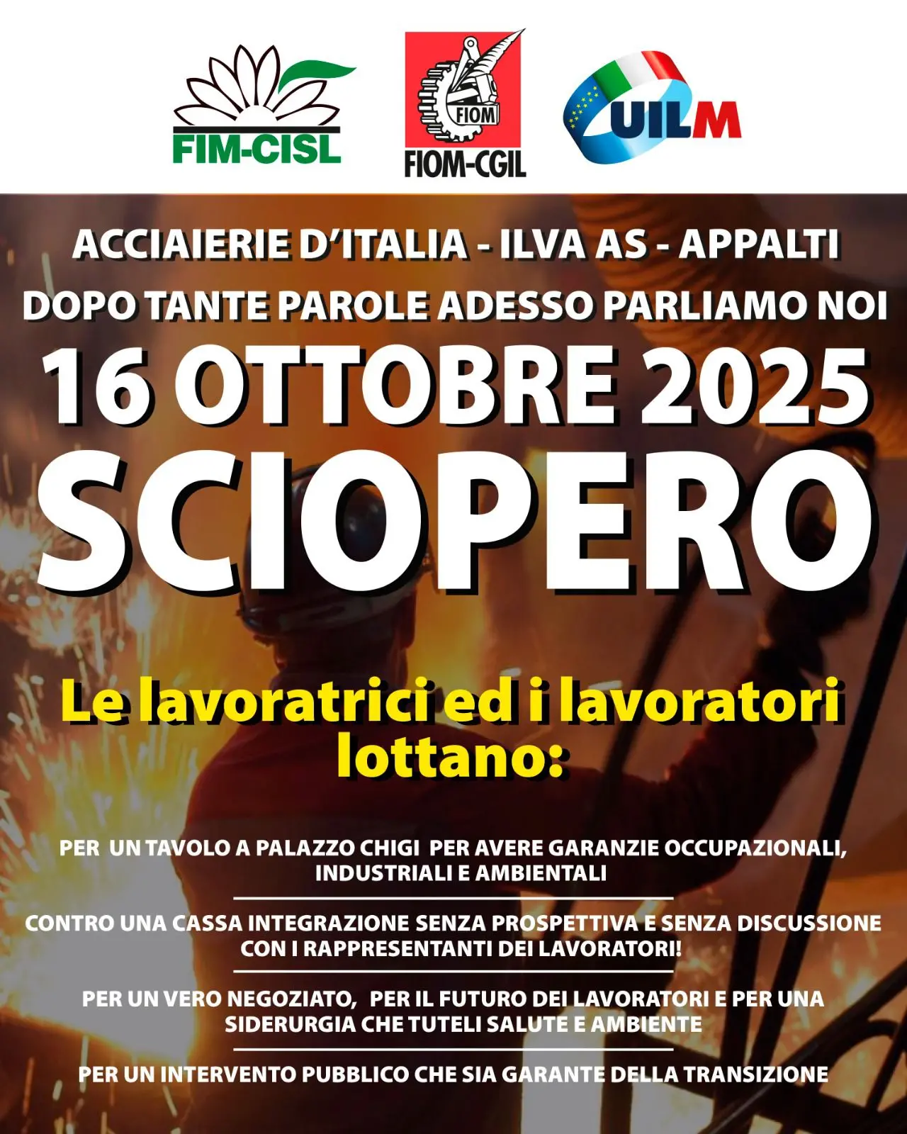 Le motivazioni che hanno spinto i sindacati a dichiarare lo sciopero nazionale, però, sono ancora tutte lì. Fiom, Fim e Uilm chiedono “un progetto industriale che garantisca la realizzazione della decarbonizzazione della produzione, l’ambientalizzazione e il ripristino di luoghi di lavoro sicuri e dignitosi”, nonché “l’intervento pubblico che garantisca tutta l’occupazione”.