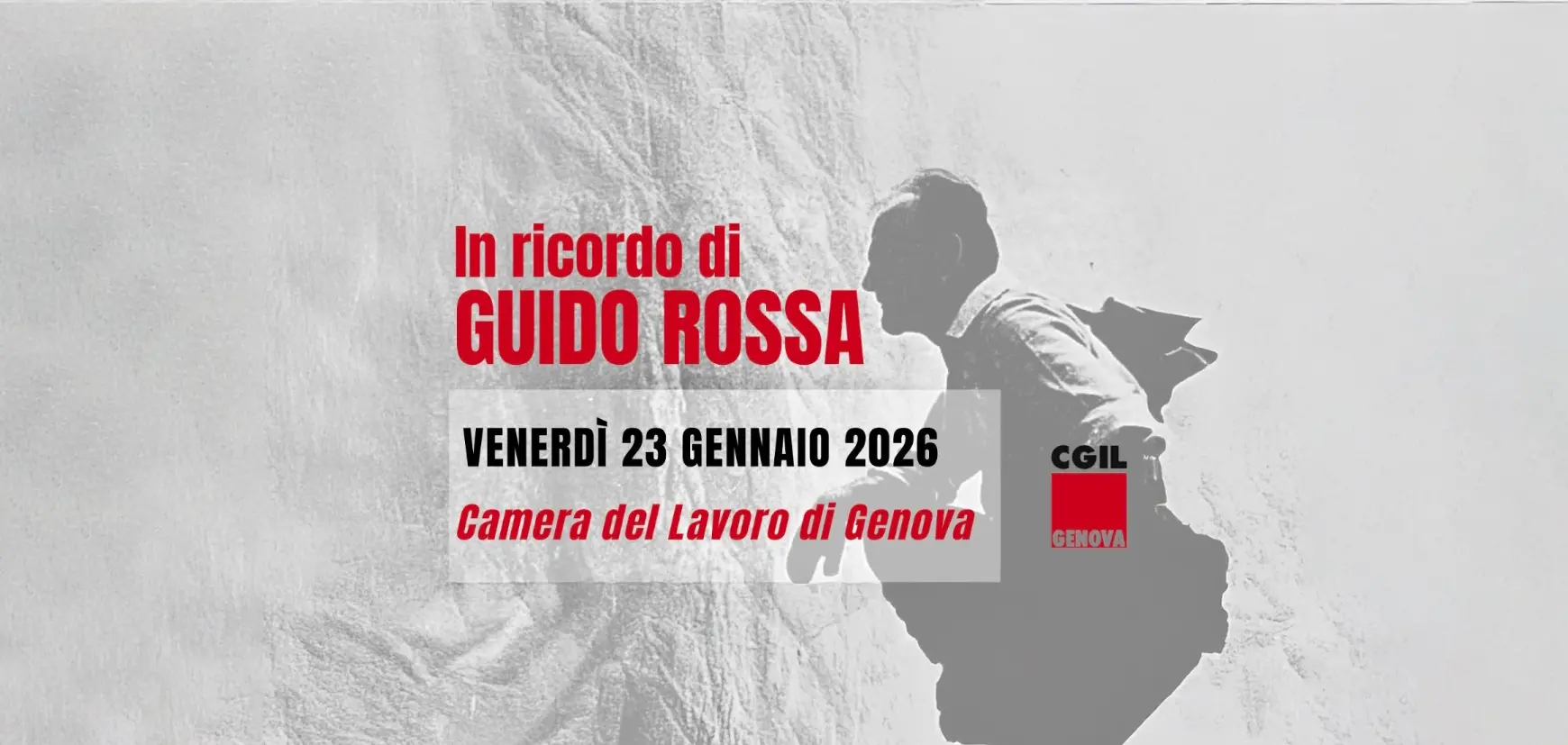 Oggi, 23 gennaio, alle ore 12.00, a Genova, in Via San Giovanni d’Acri 6, Casa del Sindacato, commemorazione a cura della Camera del Lavoro in ricordo di Guido Rossa, operaio e sindacalista, assassinato nel 1979 per mano delle Brigate Rosse. La cerimonia si svolgerà presso il monumento a lui dedicato. Un momento di raccoglimento e riflessione per ricordare una figura che ha pagato con la vita la scelta di difendere i valori della libertà, del lavoro e della democrazia.