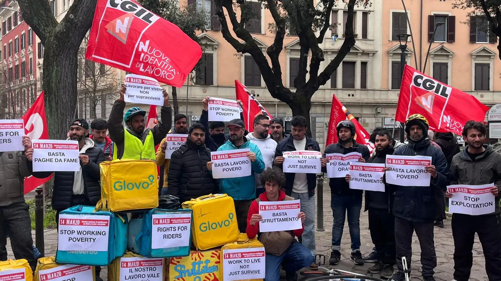 “Condizioni lavorative estreme: compensi tra 2 e 4 euro a consegna e turni molto intensi, 6-7 giorni a settimana, 7-10 ore al giorno. Le aziende del food delivery, dopo l’intervento della Procura di Milano, si siedano a un tavolo e riconoscano il contratto nazionale merci e logistica”. A dirlo è la segretaria confederale Cgil Francesca Re David, partecipando al presidio di Roma: “Per la maggioranza dei ciclofattorini il food delivery rappresenta il lavoro principale, con turni molto intensi e più di otto consegne quotidiane nel 62 per cento dei casi”.