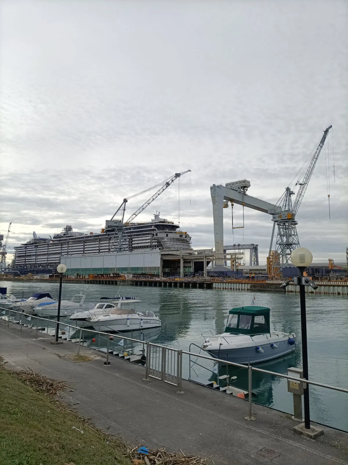 Una città cantiere e un cantiere città. Non è un gioco di parole: entrambe le definizioni descrivono bene la realtà di Monfalcone, “capitale” del Primo Maggio 2024. Quassù, sulla sponda più settentrionale dell’Adriatico, Fincantieri è un gigante che crea giganti, enormi alberghi galleggianti lunghi come tre campi di calcio e da 175mila tonnellate di stazza, come la Sun Princess, consegnata a febbraio. Il cantiere, con i suoi bacini, le banchine, i suoi imponenti carroponti e le sue gru, occupa un’area immensa, dove ogni giorno lavorano fianco a fianco 8mila persone, ma più di diecimila nei momenti di lavoro più intenso. Tutto questo in una città che oggi, e per giunta dopo vent’anni di vero e proprio boom demografico, conta appena 30mila abitanti.