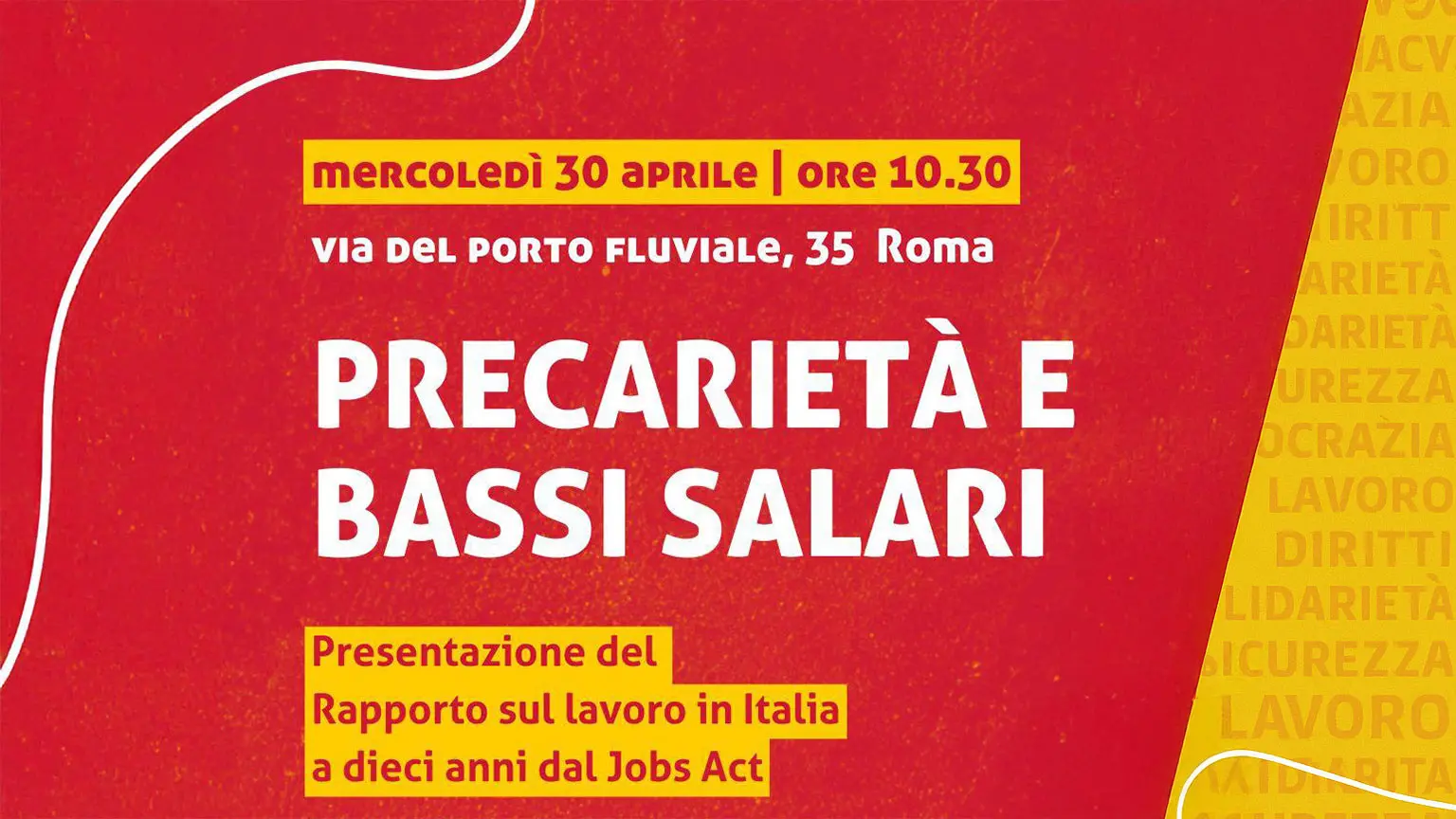 A dieci anni dall’introduzione del Jobs Act, la riforma del mercato del lavoro realizzata dal governo di Matteo Renzi, e a poco più di un mese dai referendum sul lavoro dell’8 e 9 giugno prossimi, Cgil nazionale e Fondazione Giuseppe Di Vittorio terranno un’iniziativa a Roma per presentare: “Precarietà e bassi salari. Rapporto sul lavoro in Italia” . L’appuntamento, al quale parteciperà il segretario generale Maurizio Landini , si tiene mercoledì 30 aprile a partire dalle ore 10.30 alle Industrie Fluviali, in via del Porto Fluviale 35 .