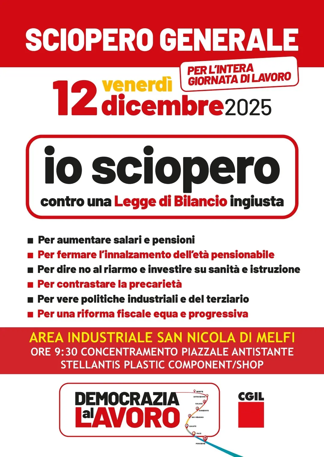 Concentramento alle ore 9:30 nel piazzale antistante Stellantis Plastic Component/Shop nell’Area industriale San Nicola di Melfi in provincia di Potenza.Al corteo parteciperà Samuele Lodi, segretario nazionale Fiom Cgil.