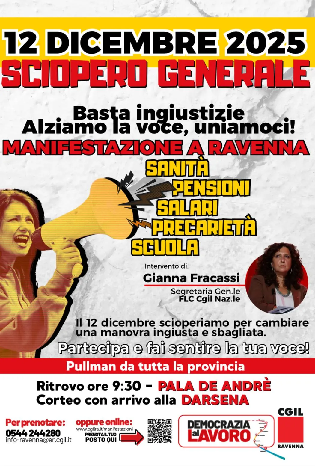 A Ravenna ritrovo alle ore 9:30 al Pala De Andrè e corteo con arrivo alla Darsena. Le conclusioni del comizio saranno affidate a Gianna Fracassi, segretaria generale della Flc Cgil nazionale.