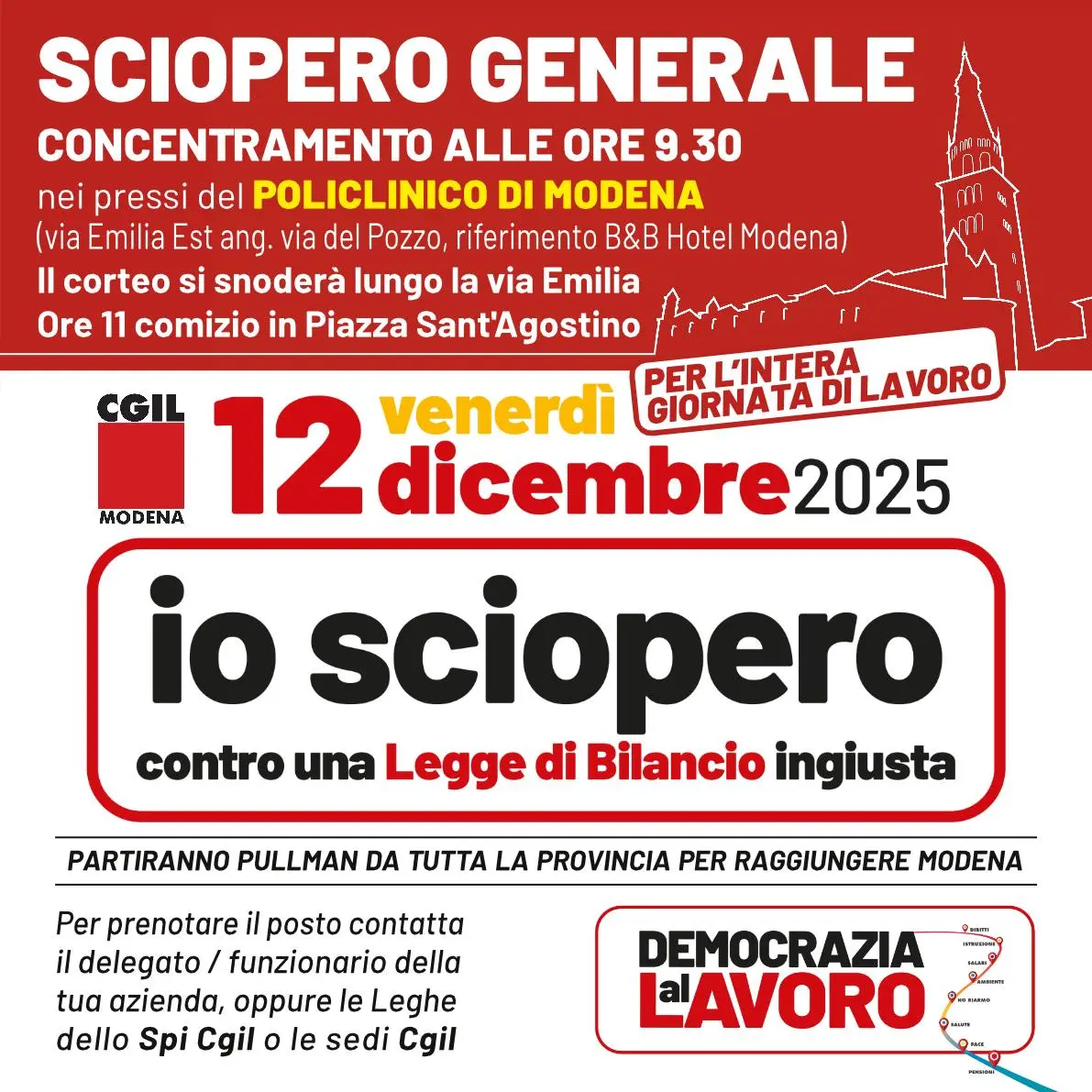 A Modena concentramento alle ore 9:30 nei pressi del Policlinico (Via Emilia Est, angolo Via del Pozzo). Ore 11:00 comizio in Piazza Sant’Agostino.