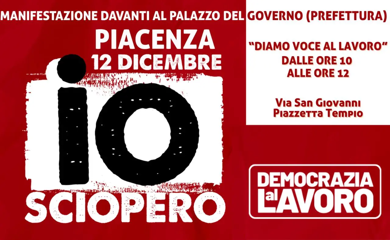 A Piacenza presidio sotto la Prefettura, dalle 10:00 alle 12:00.