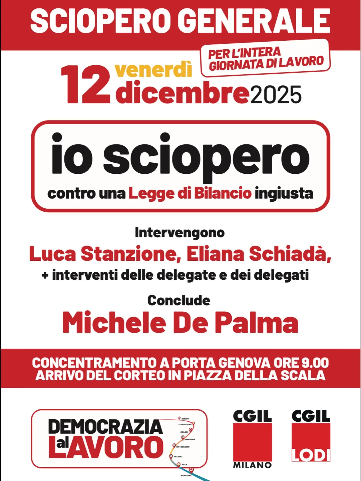 A Milano il corteo principale della Lombardia prenderà il via alle 9:00 da Porta Genova e arriverà in Piazza della Scala. Le conclusioni saranno affidate a Michele De Palma. Alla manifestazione partecipa anche la Cgil Lodi.