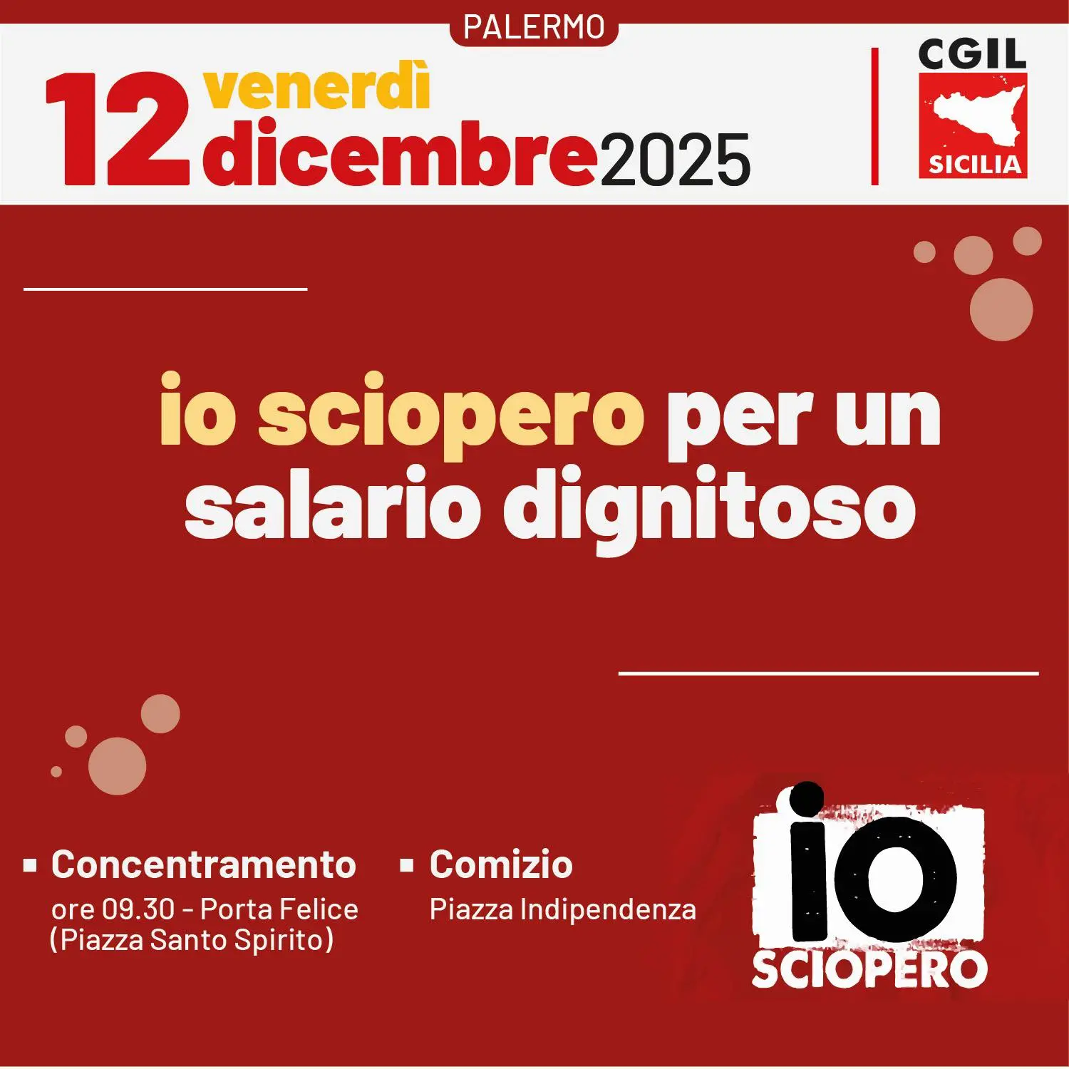 Manifestazione regionale a Palermo. Concentramento ore 9:30 a Porta Felice (Piazza Santo Spirito) e comizio in Piazza Indipendenza. Partecipa Serena Sorrentino, Cgil nazionale.