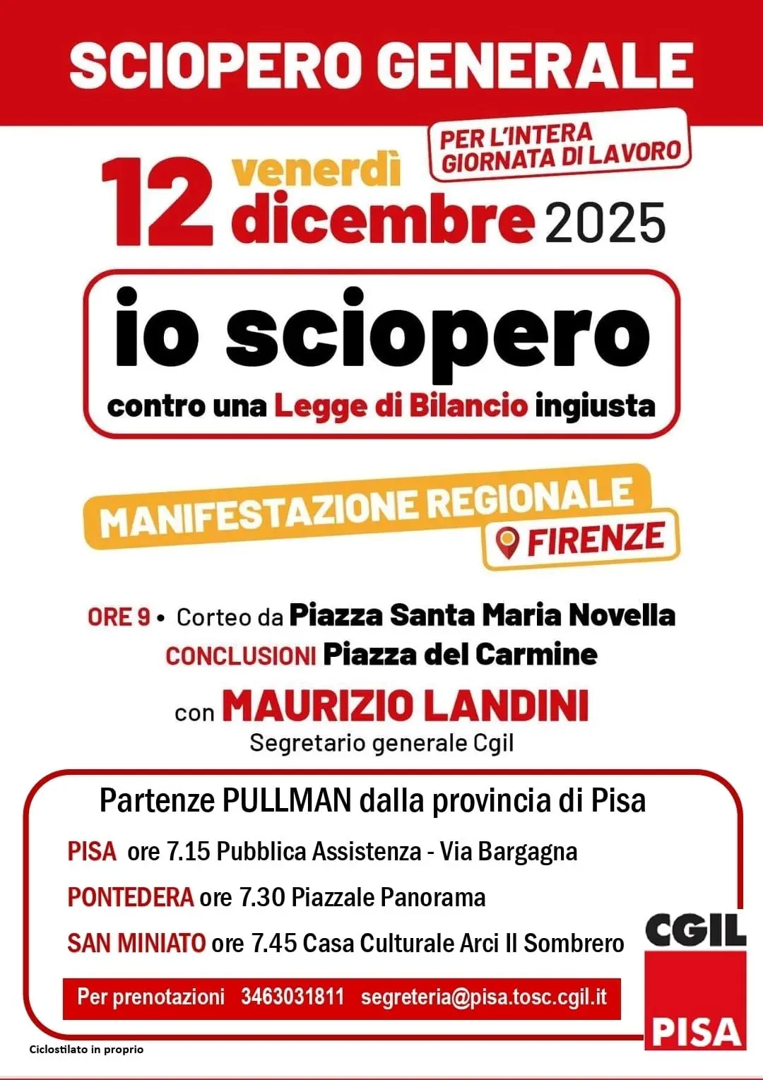 Il 12 dicembre è il giorno dello sciopero generale indetto dalla Cgil. Ecco tutti gli appuntamenti in piazza, città per città. Il segretario generale, Maurizio Landini, concluderà il comizio di Firenze.