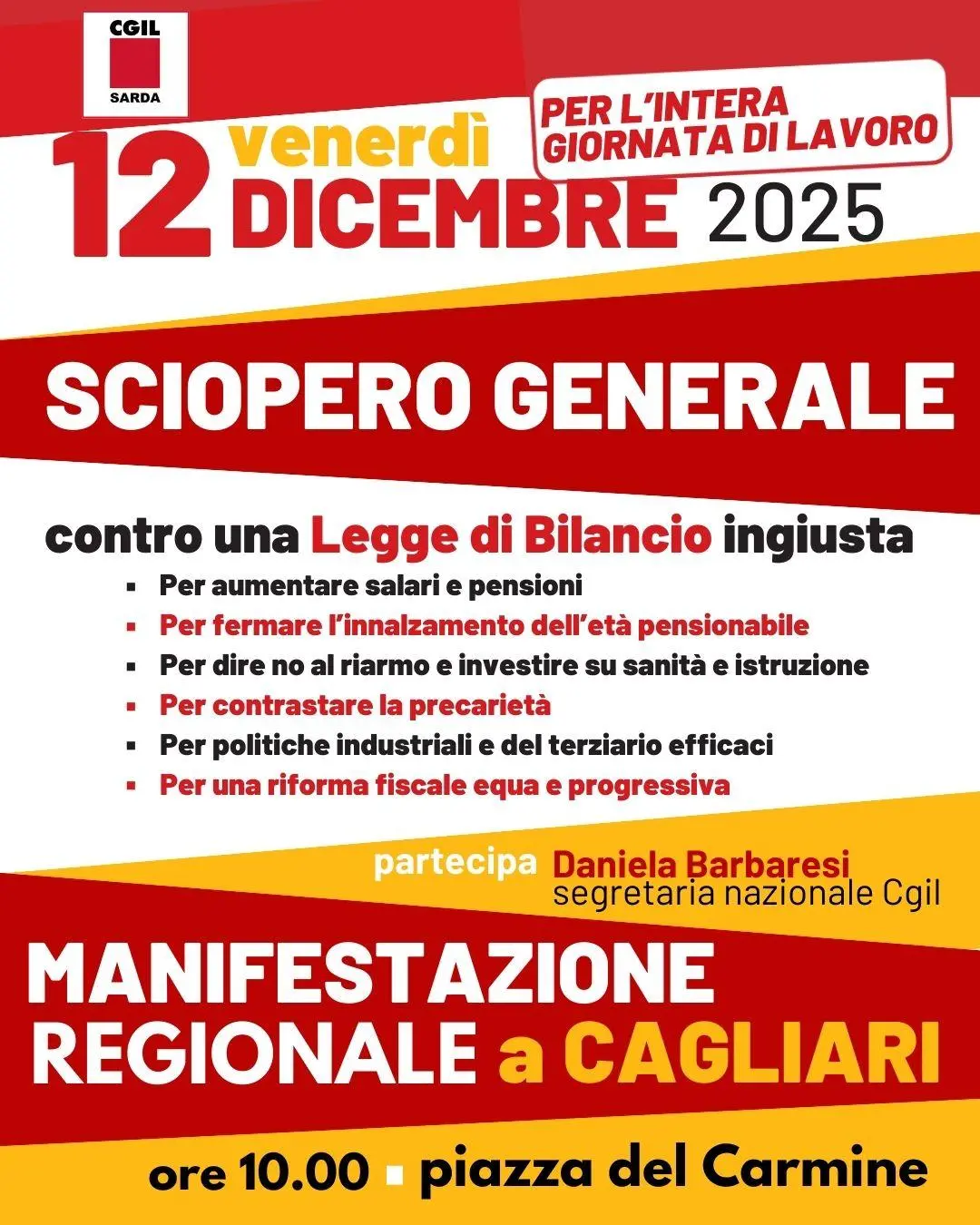 Manifestazione regionale a Cagliari. Appuntamento alle ore 10:00 in Piazza del Carmine. Conclusioni affidate a Daniela Barbaresi, segretaria confederale della Cgil nazionale.