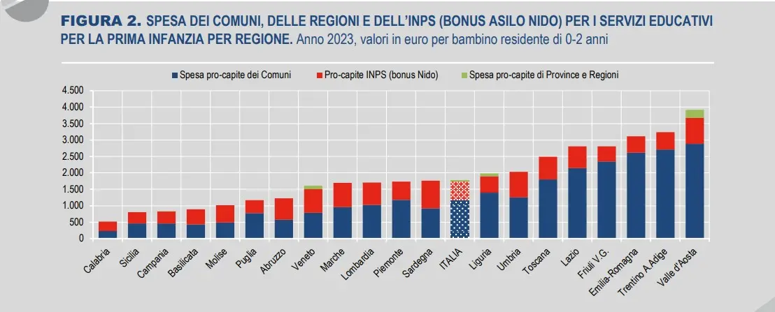Una delle ragioni per le quali all’Italia è arrivata una delle quote più consistenti dei fondi per il Pnrr è che da noi esistono divari più profondi che in altri paesi del continente. Divari di genere, tra le generazioni e territoriali. Ebbene anche su questo capitolo il governo ha fallito, i divari non si sono affatto ridotti a cominciare proprio da quelli territoriali. E gli asili nido ne sono un triste esempio. Scrive ancora l’Istituto: “Le regioni del Sud e delle Isole, esclusa la Sardegna, sono ben al di sotto del parametro del 33%, con una media ripartizionale rispettivamente del 19,0% e 19,5%. L’Italia centrale presenta la media più alta (40,4%), con un picco del 48,4% in Umbria. Seguono il Nord-est (39,1%) e il Nord-ovest (36,6%)”. E c’è qualcuno che ancora evoca l’autonomia differenziata.
