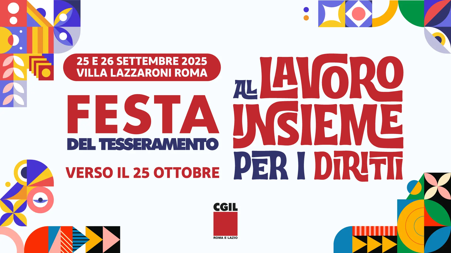 Al via la terza edizione della festa della Cgil di Roma e Lazio: “Al lavoro. Insieme per i diritti”. Appuntamento il 25 e il 26 settembre a Villa Lazzaroni, Roma.