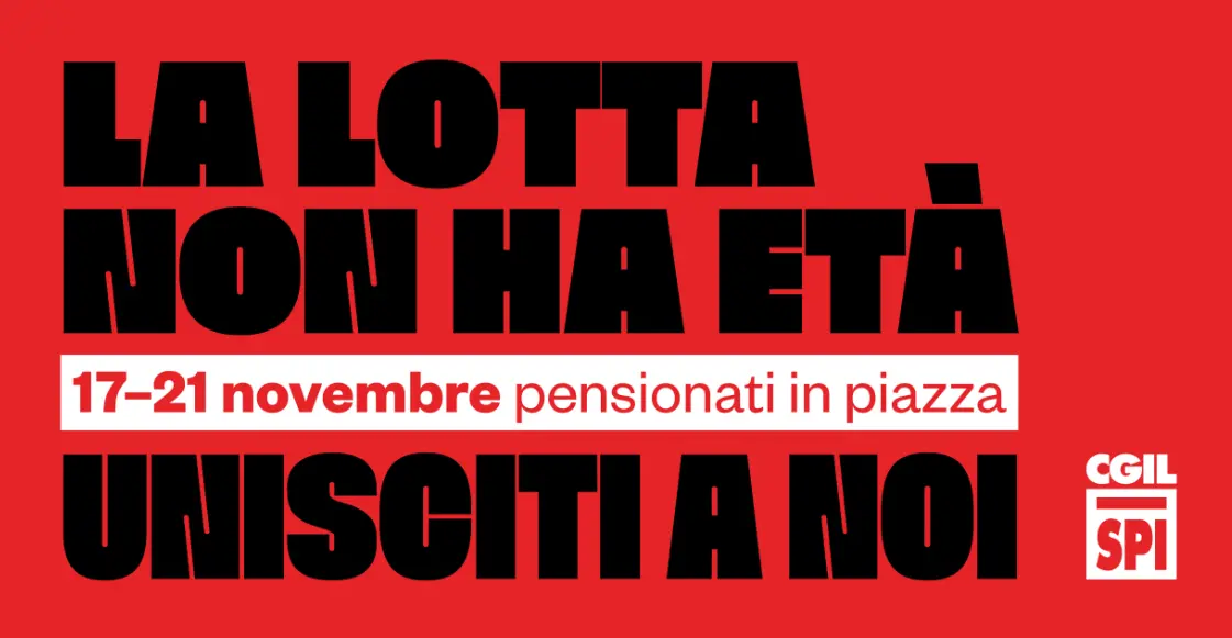 “La lotta non ha età”. Con questo slogan i pensionati e le pensionate italiane scendono in piazza in moltissime città del Paese, dal 17 al 21 novembre, contro la manovra economica del governo meloni. “Mentre il governo investe nelle armi noi difendiamo le persone”, si legge nella chiamata alla mobilitazione.