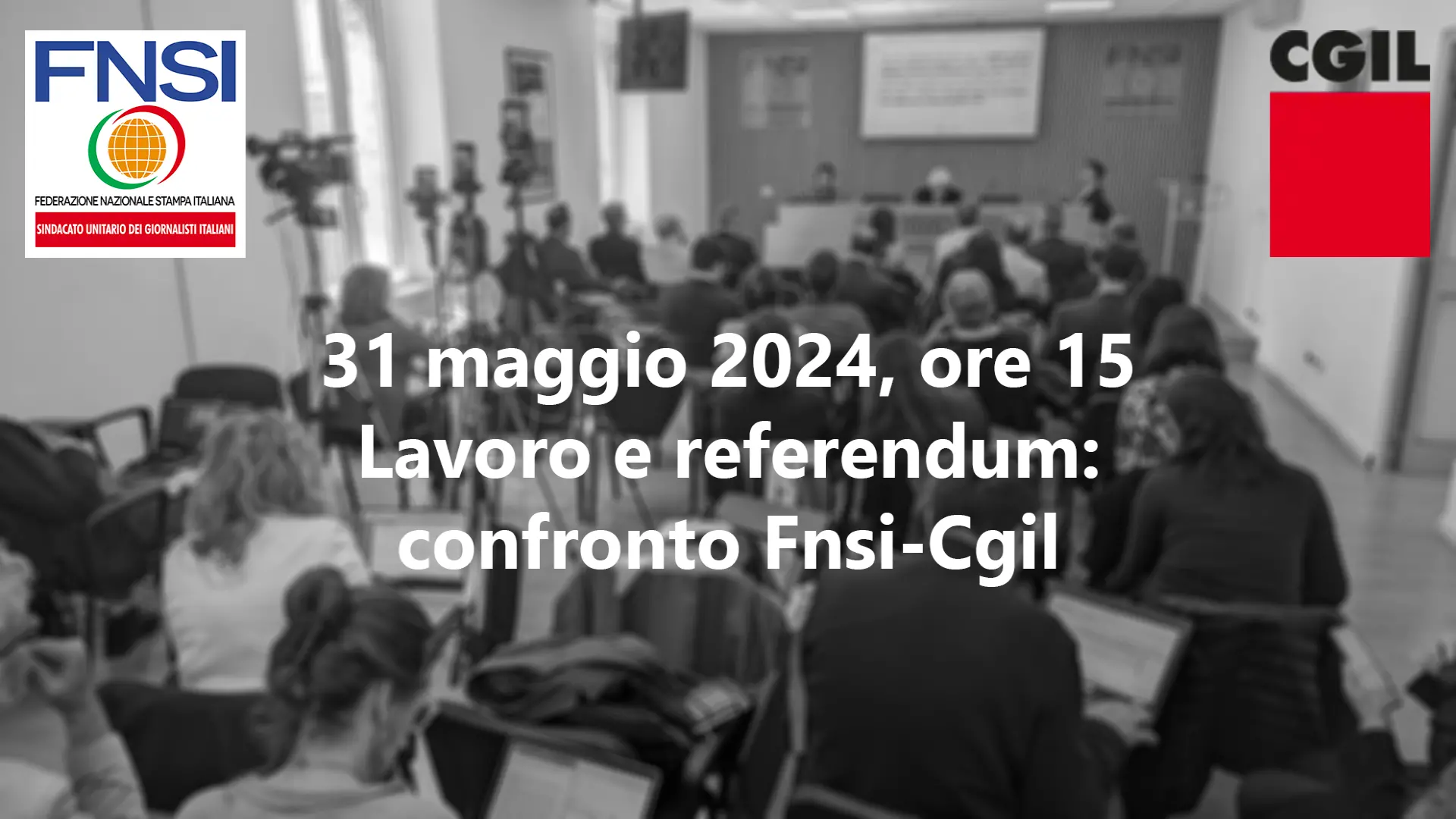 I temi del lavoro saranno al centro del confronto in programma venerdì 31 maggio, a partire dalle ore 15, nella sala Walter Tobagi della Fnsi (via delle Botteghe Oscure, 54 a Roma) nell'ambito del quale sarà anche illustrata la campagna referendaria promossa dalla Cgil che la Federazione nazionale della Stampa italiana ha deciso di sottoscrivere e sostenere.