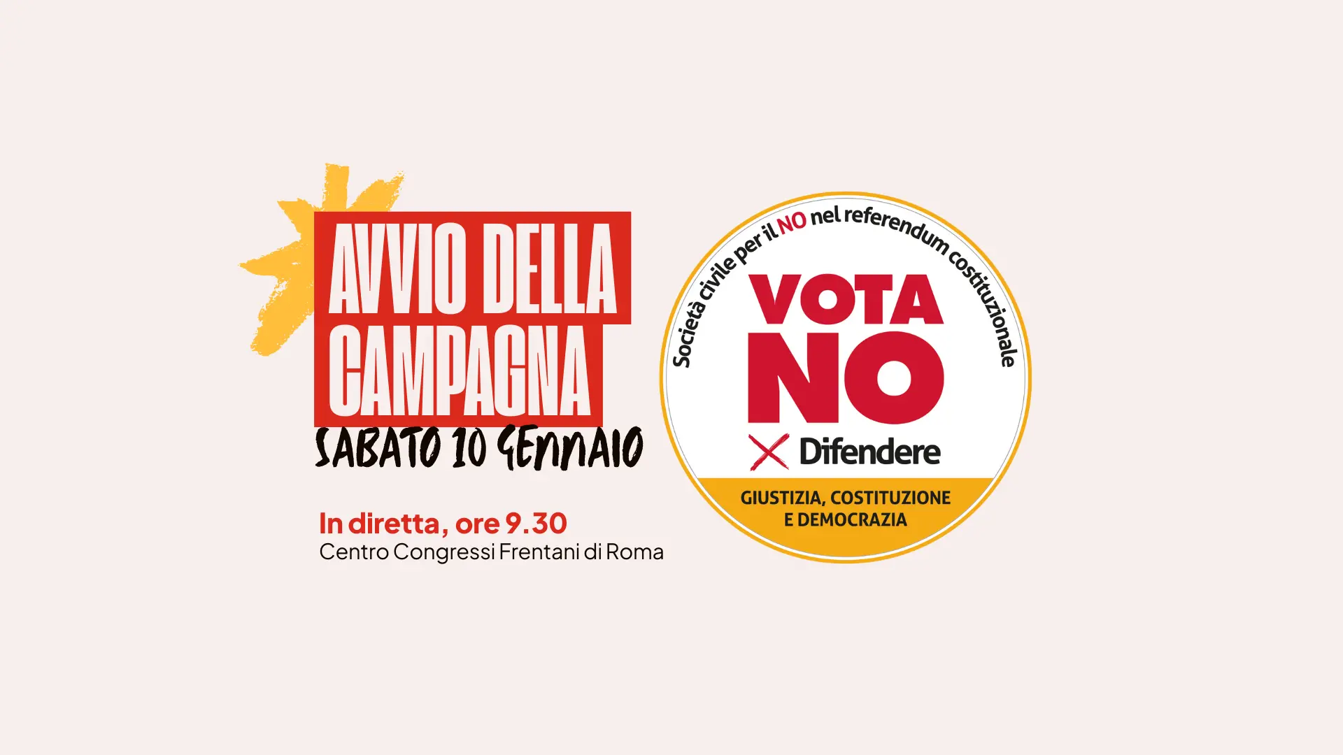 Il Comitato della società civile per il No al referendum costituzionale sulla giustizia lancia la campagna elettorale e sostiene la raccolta delle firme digitali. L’appuntamento è sabato 10 gennaio alle ore 9.30 al centro congressi Frentani di Roma e in diretta su Collettiva.