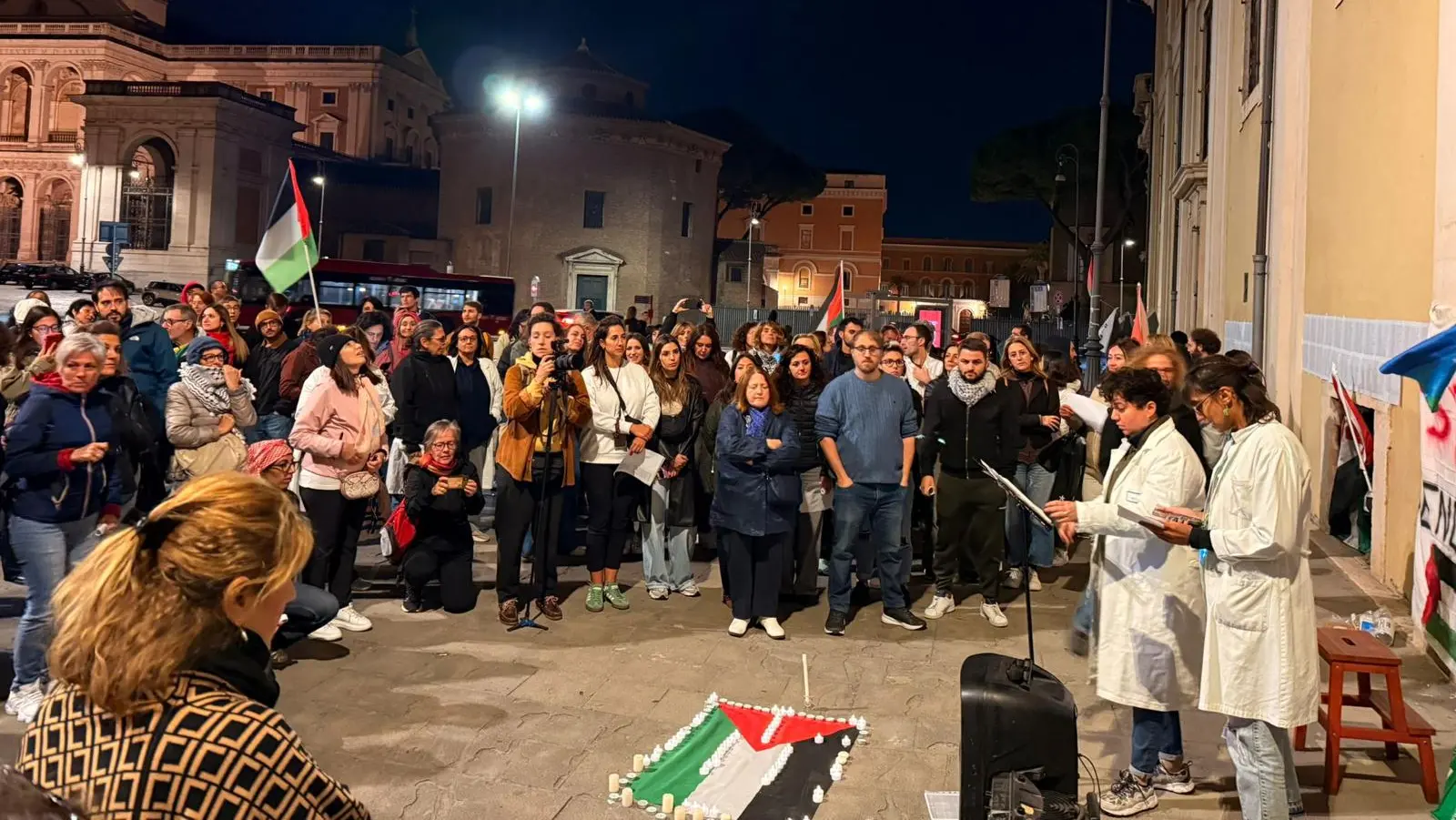 Il buio della sera di giovedì 2 ottobre si è schiarito davanti agli oltre 200 ospedali di tutta Italia dove si sono dati appuntamento medici infermieri, operatori e operatrici sanitari per dire no al genocidio, per ricordare gli operatori e le operatrici che in questi due anni di bombardamenti sono rimasti uccisi dalle bombe lanciate da Israele.
